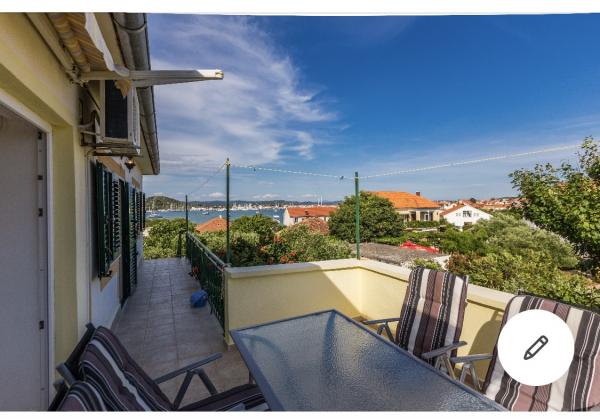 Preporučujem! Vlasnica će vas srdačno dočekati, a njezina ljubaznost i suradnja za ugodan boravak stoje vam na raspolaganju. Apartman opremljen i ugodan s prekrasnim pogledom. Plaža, trgovina, konoba gotovo ispred vrata (minuta hoda) restorani i centar još nekoliko minuta, ne treba vam auto. Prekrasan panoramski pogled s brda gdje se nalazi i crkva sv. Roka (45min) s druge strane možete prošetati podzemnim tunelima vojnog bunkera (ne zaboravite svjetla) odavde je također prekrasan pogled (45min). Poznata plaža Slanica je udaljena oko 10 minuta hoda...lijepa (pijesak). Biciklisti, ponesite svoje bicikle! Super smo se proveli, nakon prvog dana već smo pričali o povratku sljedeće godine, i hoćemo! Preporučujem, prekrasno, odlično!!!