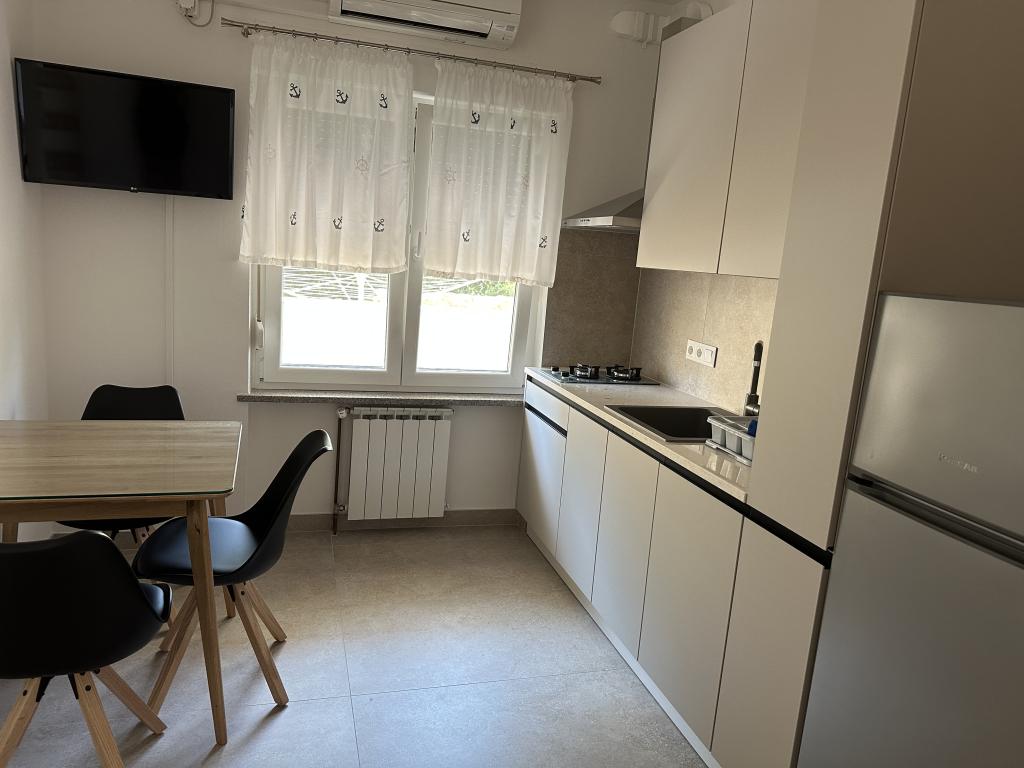 Vrlo cool mjesto šljunčana plaža cca 250 m, Konzum supermarket i banka u istom mjestu, čak spominje zl. na kune. pješčana plaža idealna za djecu cca. 500 m. u stanu čist i ugodan klimatski, Wi-Fi, TV, kuhalo za vodu, mikrovalna pećnica, kuhinja, pribor za jelo, tanjuri, lonci, sve što trebate čak ručnike, kućica s roštiljem. Vlasnici ljubazni i pažljivi, ja bih preporučio. Ja ću se vratiti.