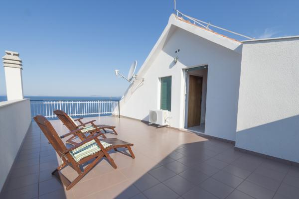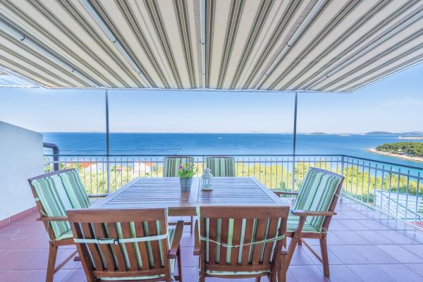 Nesumnjivo, naši apartmani su među najboljima u Murteru, poželjni zbog prekrasnog pogleda, atraktivne lokacije i udobnosti, ali i zbog našeg otvorenog srca i gostoprimstva. Šum valova, miris mora i predivan pogled na nacionalni park Kornati i murterski arhipelag, učinit će Vaš odmor divnim i nezaboravnim iskustvom za cijelu obitelj. Zelenilo, veliki kućni vrt, mir i položaj kuće samo 150 m od mora i plaže Slanica je glavni razlog što nas naši gosti posjećuju i vraćaju se svake godine. U kući su 3 apartmana koja se iznajmljuju. Jedan veliki apartman za 4 osobe AP (4 1) sa 2 spavaće sobe, dnevnim boravakom, blagovaonicom, kuhinjom i kupaonom, i 2 manja apartmana sa 1 spavaćom sobom, 1 kupaonicom i dnevnim boravakom sa kuhinjom: AP 1 (2 1) i AP 2 (2 1). Svaki apartman ima terasu sa pogledom na more.