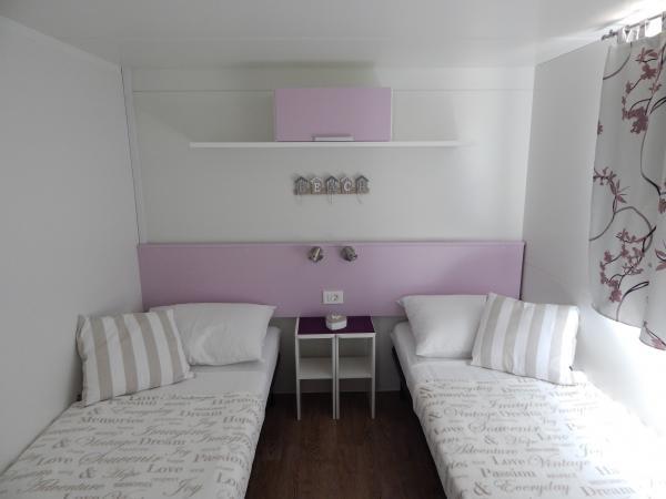 Mobilna kućica Lavanda smještena je u kampu Jezera Village na otoku Murteru nadomak šljunčane plaže. Sastoji se od dvije spavaće sobe (jedna sa bračnim krevetom i jedna sa dva odvojena kreveta), kompletno opremljene kuhinje i dnevne sobe s pomoćnim ležajem za dvije osobe, kupatila i prostrane terase (21m2). Opremljena je novim modernim i funkcionalnim namještajem i opremom (sat-TV, klima, mikrovalna pećnica, kuhalo za vodu, sušilo za kosu, glačalo...). Uz kućicu gostima je osiguran i parking za vozilo. Našim je gostima na raspolaganju bicikl za kampere za dodatni užitak istraživanja okolice.