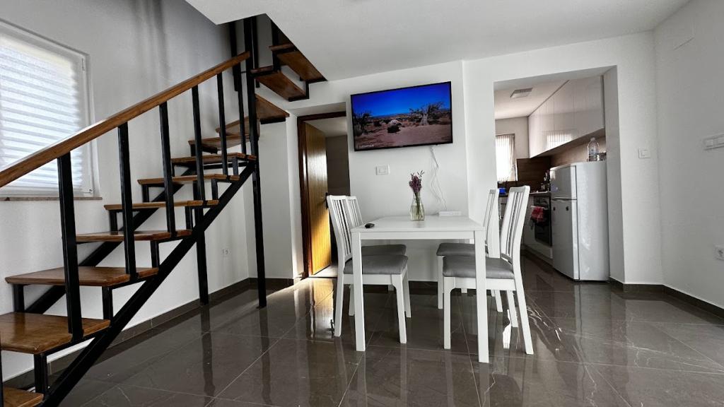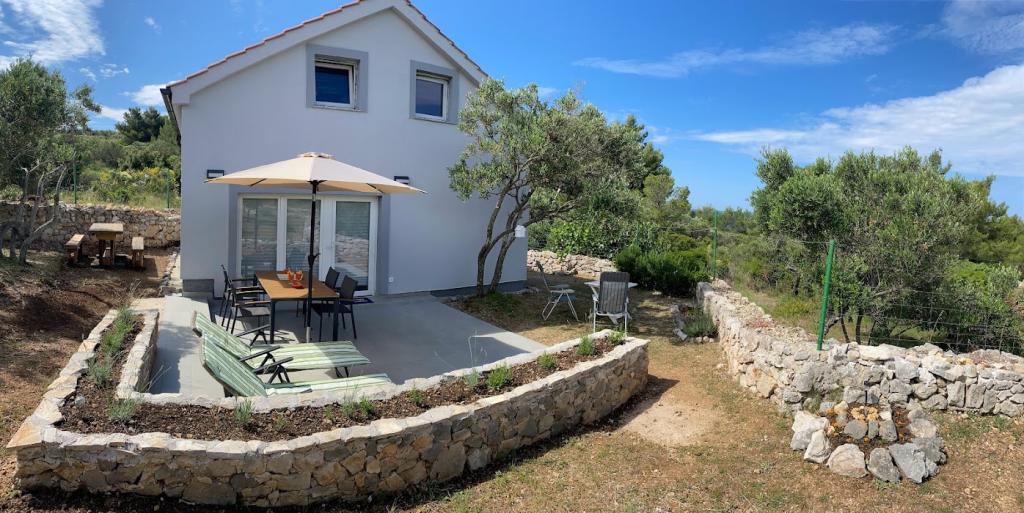 **Oaza mira u srcu Mediterana** Smještena u idiličnom masliniku, svega 100 metara od mora i iznad prekrasne plaže, naša kuća pruža savršeno mjesto za odmor u potpunoj osami. Ovdje ćete, uz predivnu prirodu, božanstven pogled na Kornate i nezaboravne zalaske sunca, pronaći mir i tišinu daleko od svakodnevne užurbanosti. Kuća je potpuno novo uređena i opremljena svime što vam je potrebno za bezbrižno uživanje. Osim što se nalazi tik uz jednu od najljepših plaža na Mediteranu, na svega 400 metara udaljenosti pronaći ćete još jednu plažu, trgovinu, dječje igralište, restorane, kafiće, ljekarnu i druge sadržaje. Doživite pravi odmor – more, masline i mir čekaju na vas.