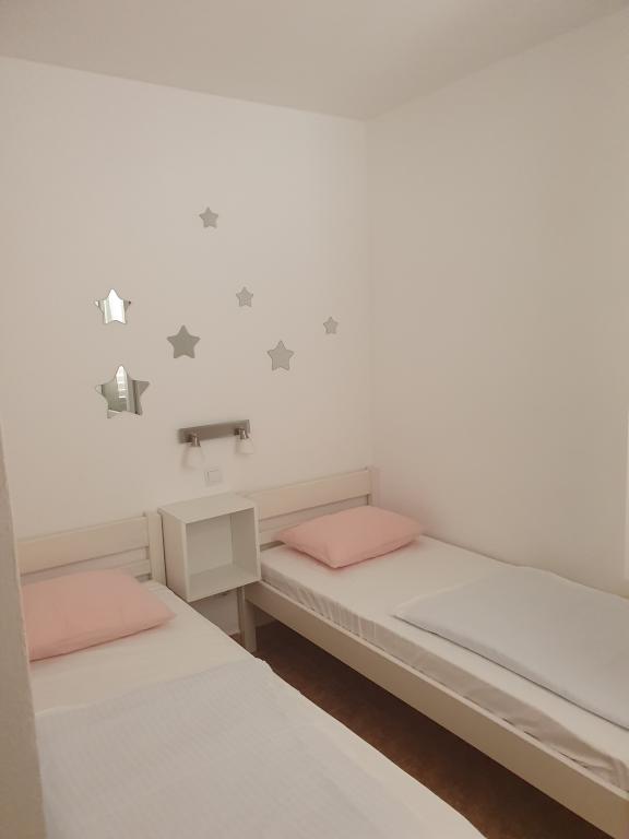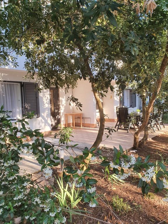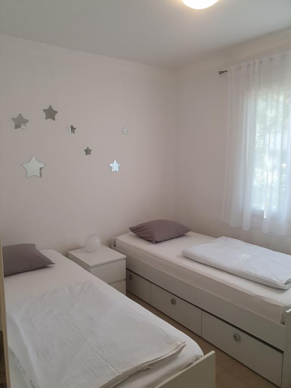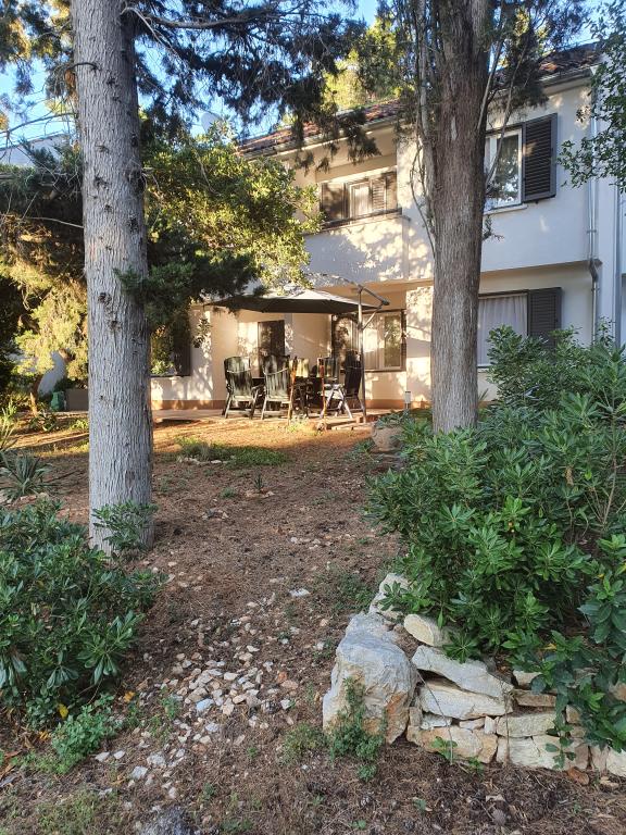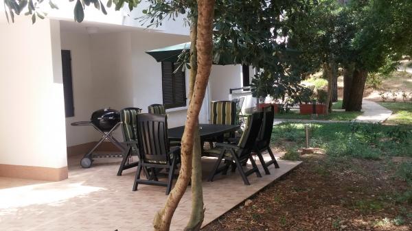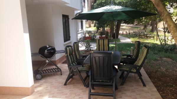 Potpuno opremljeni i uređen apartmani za ugodan boravak do 6 osoba, smješteni u borovoj šumi. Apartmani su udaljeni 3 minute hoda od mora i prekrasne plaže do koje se dolazi kroz borovu šumu. Apartmani se sastoje od dvije sobe - jedna s bračnim ležajem i jedna s dva odvojena ležaja, dnevnog boravka u kojem se nalazi trosjed na razvlačenje i LCD TV, blagavaone (veći apartman - nastao adaptacijom dva manja apartmana u jedan veliki apartman od 60m2), kupaonice, kompletne kuhinje sa aparatima poput kuhala za vodu, aparata za kavu (perilica rublja i posuđa u većem apartmanu) i terasa, uz mogućnost korištenja roštilja. Svaki od naših apartmana je opremljen posteljinom, ručnicima, kuhinjskim priborom kao i aparatima potrebnim za vaš nesmetan boravak. Cjelokupni ambijent (borova šuma, blizina i uređenost plaže i mora, zaštićenost šetnice od prometnice) predstavlja idealno okruženje za opuštanje i obiteljski odmor sa malom djecom ili kućnim ljubimcem.