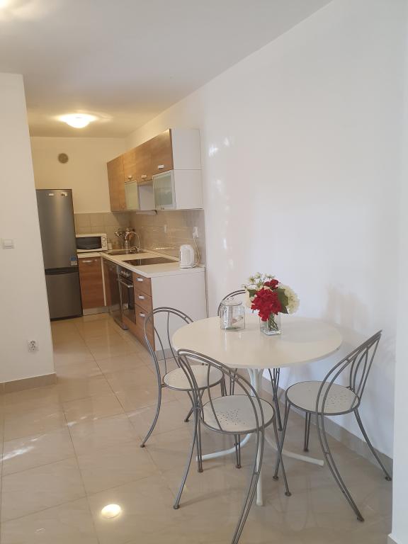 bili smo zadovoljni svime domaćini / vlasnici prijateljski, lokacija odlična (plaža, trgovina blizu), stan uredan i čist za kućne ljubimce posebno super jer apartman ima terasu u borovoj šumi Preporučujem svima koji traže opuštajući ili aktivni odmor.