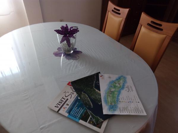 Kuća za odmor sa dva apartmana je smještena u sunčanoj uvali Nečujam na otoku Šolti. Udaljenost od centra mjesta u kojem se nalaze plaža, trgovina, pekara i ugostiteljski objekti je 300 m. Veći apartman na katu kuće za max 6 osoba ima veliku terasu s pogledom na Split te uključuje: perilicu za rublje, perilicu za suđe, klimu, fen, tv, tuš/kada, radio. Apartman u prizemlju za max 4 osobe uključuje: perilicu za rublje, fen, tv, tuš/kada, klima.