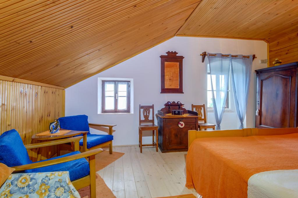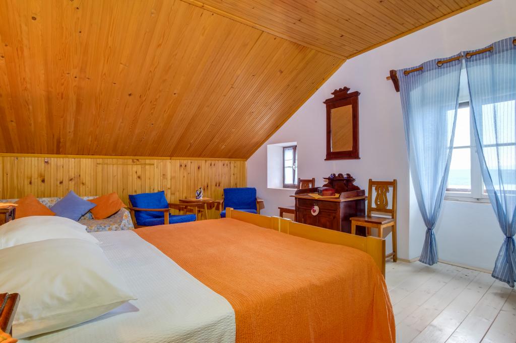 Dragi gosti, kod nas je odmor malo specifičan. Mi smo kuća na osami, okružena prirodnim zelenilom i maslinama. Kod nas imate mir, udaljenost od glavne ceste je 1,5 km, a od centra mjesta Nerezine 3 km. Na raspolaganju vama kao gostima je prostrani parking, širok prostor ispred apartmana (200 m kvadratnih) gdje vaša djeca mogu slobodno bezbrižno boraviti. Imate i vanjski tuš, roštilj, stol sa klupom i stolicama ispod hladovine trstike gdje možete na miru vani doručkovati Kod nas možete kupiti naše domaće maslinovo ulje i likere. Ako volite pomalo "divlji" okoliš, ako vam ne smetaju ovce koje navečer šeću ispred apartmana i čekaju da im bacite komad kruha ili povrća, ako vam ne smetaju mačke koje leže po okolnim zidićima, ako volite širok prostor, onda je ovo pravo mjesto za vas. Ovdje živi samo naša familija i potrudit ćemo se da vam savjetujemo gdje su najlijepše plaže i restorani, kako bismo vaš boravak učinili što lijepšim i ugodnijim