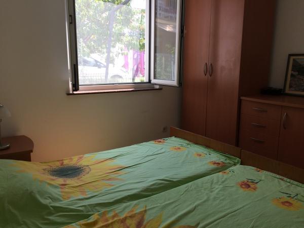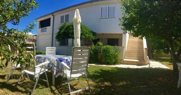 Kompletno suvremeno opremljen apartman u prizemlju kuće, dvije odvojene spavaće sobe sa bračnim krevetima.Prekrasnom velikom okučnica sa vrtom. Objekat se nalazi 2 min. hoda do mora i plaže. Terasa-lođa sa garniturom za sjedenje i garnitura za sjedenje u vrtu sa dijelom vrta samo za vašu upotrebu.Roštilj i trampolin za djecu. Ljubimci su dobrodošli. Parking u dvorištu. Klima uređaj, mašina za rublje.