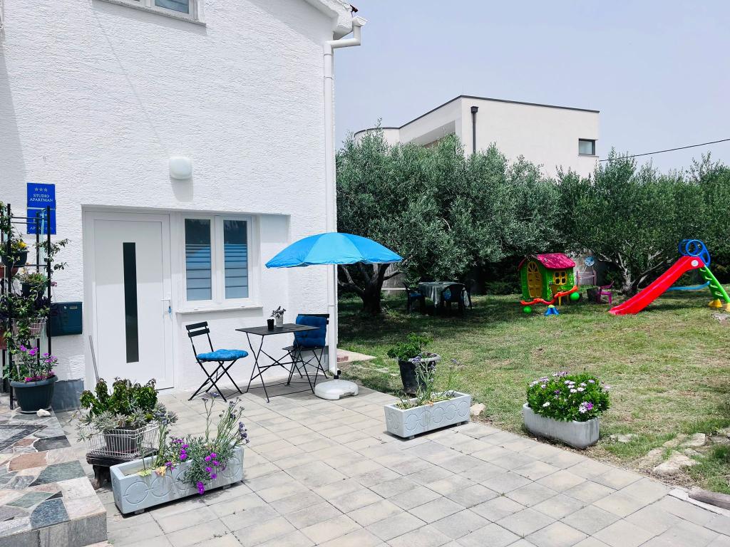 Suvremeno opremljeni apartmani nalaze se u malom mirnom mjestu Vrsi, 20 km udaljenom od Zadra i samo 5 km od kraljevskog grada Nina. Kuća je smještena u neposrednoj blizini trgovine, pekare, kafića i pošte. Najbliža plaža udaljena je 1,5 km. Lijepo uređeno dvorište idealno je za odmor u hladu maslina, uz mogućnost korištenja vrtnog roštilja. Opremljeno je i sadržajima za djecu. Svaki apartman ima osiguran parking.