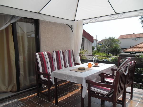 vrlo korisna dama vlasnica, dočekala nas je domaća rakija i vlastita limunada od mente, čisti, ugodni smještaj, kuhinja kompletno namještena, prekrasna terasa, prekrasan vrt, plaža oko 30 m, plaža-betonska, u moru se kamenčići mogu hodati bez cipela vode, oko 200 m plaže od ovih kamenova, najbliži restoran oko 5 minuta, do grada uz plažu oko 15 minuta hoda