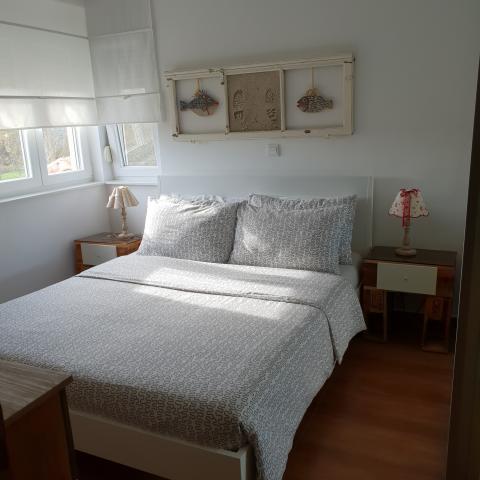 Novoizgrađeni apartman na mirnoj lokaciji, potpuno opremljen s pogledom na more. Pješčana plaža idealna za djecu, udaljena svega 50 m od apartmana a centar grada Nina 15 minuta hoda. Osigurano parkirno mjesto u ograđenom dvorištu. Apartman se sastoji od jedne spavaće sobe, dnevnog boravka s dodatnim ležajem za dvije osobe, kuhinje s blagovaonom, kupaonice i balkona. Na korištenju je i natkriveni roštilj sa drvenim klupama i stolom.