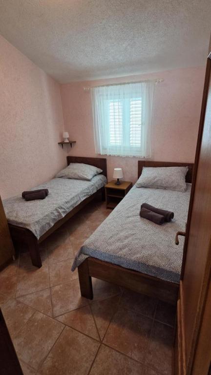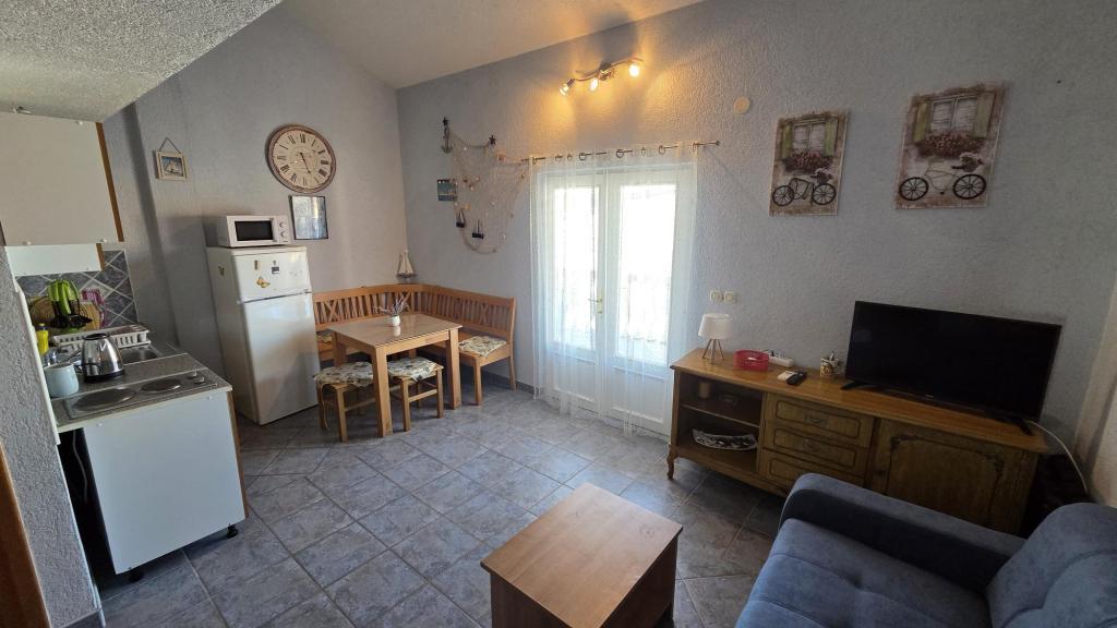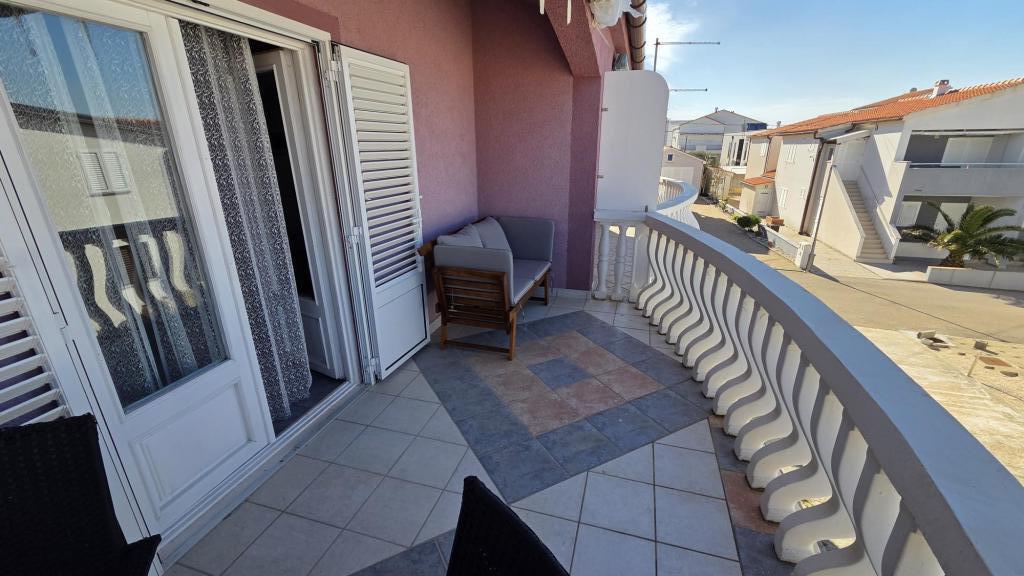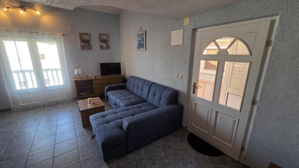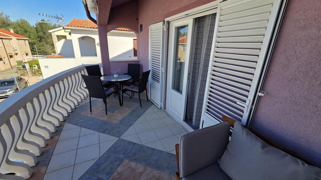 Apartman se sastoji od dvije sobe, u jednoj sobi je bračni krevet u drugoj sobi dva odvojena kreveta, kupatila, dnevnog boravka sa kuhinjom i velika terasa. Parking za automobil uz apartman. Roštilj, klima uređaj, wifi. Udaljenost od mora 5 minuta lagane šetnje, 10 minuta šetnje do centra mjesta i dućana. U blizini prekrasna ogromna borova šuma. Mirno i tiho okruženje