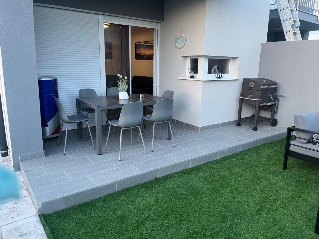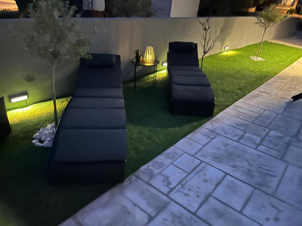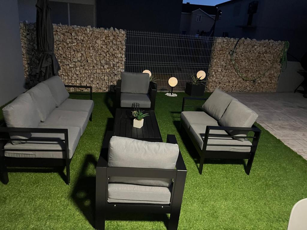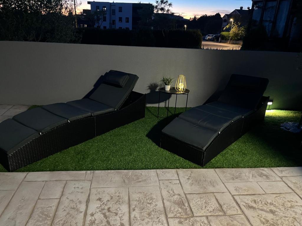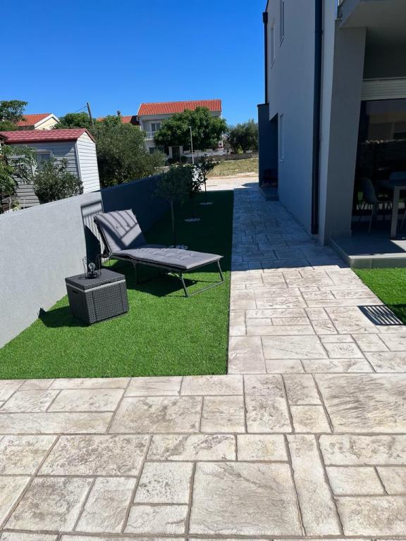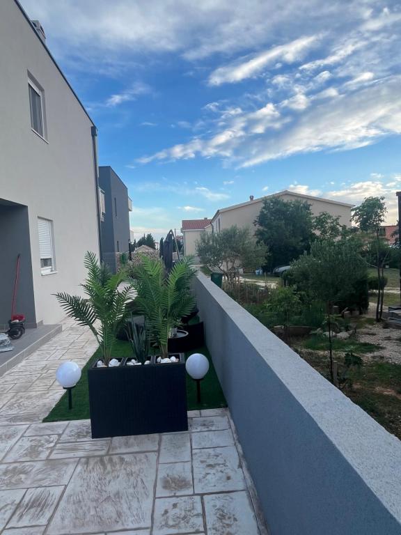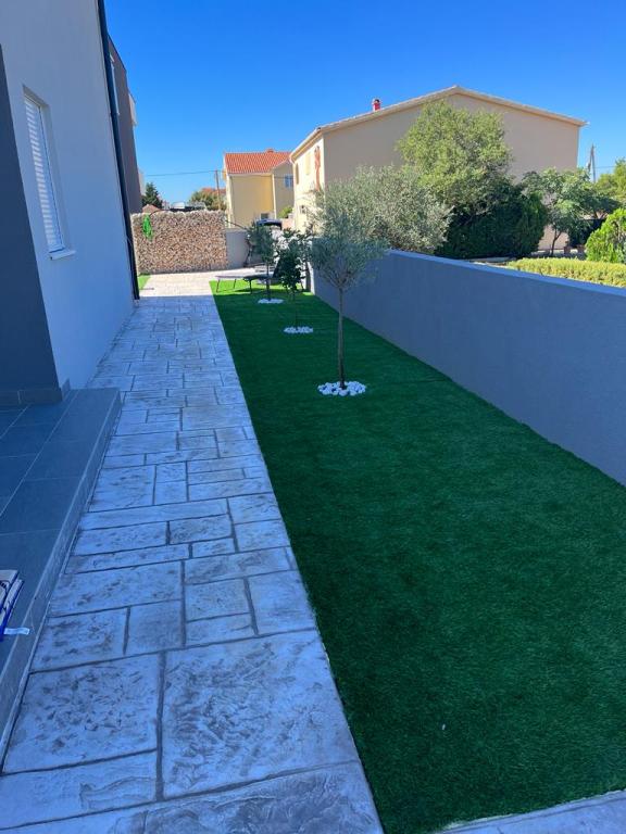 Moderan i potpuno uređen trosoban apartman u mirnom i tihom dijelu naselja Vrsi. Objekt se nalazi 800 metara od mora, ima 3 spavaće sobe opremljene klima uređajem i TV-om, dvije kupaone, prekrasnu terasu sa masažnom kadom, stolom za objedovanje i ležaljkama za sunčanje. Kuhinja je potpuno opremljena, a u zajedničkom prostoru dostupan je još jedan TV i klima uređaj. Za grupe 6+2 moguća su 2 pomoćna ležaja.