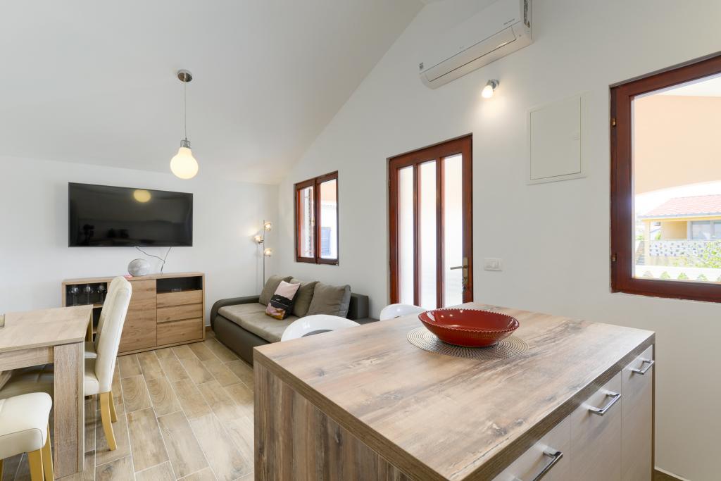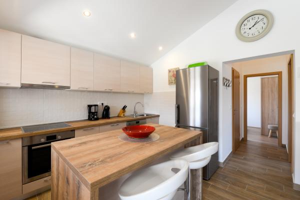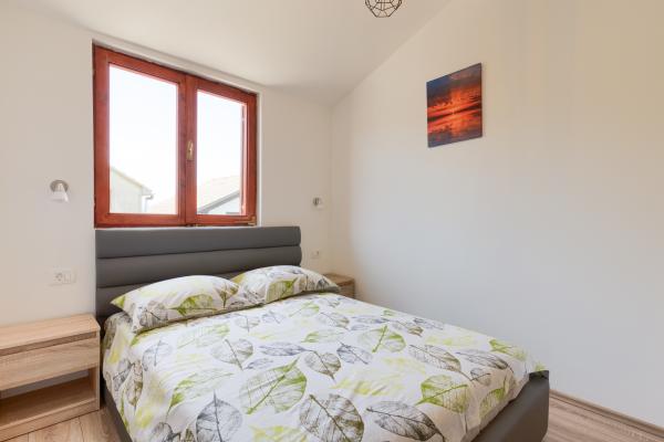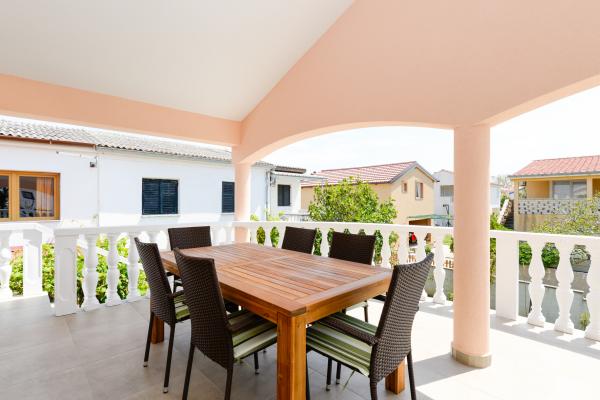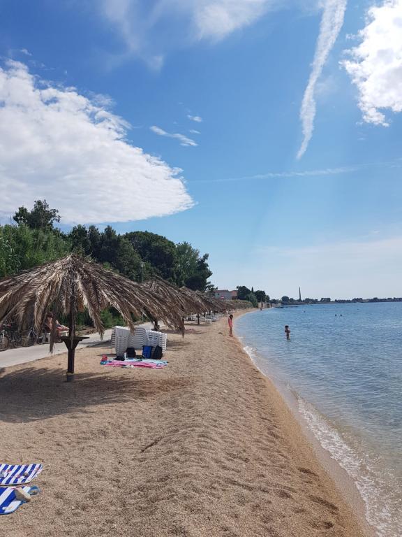 Apartman Ruža potpuno i suvremeno opremljen i nalazi se samo 30m od mora, s pogledom na more. Veliko ograđeno dvorište, prostrane terase i blizina mora čine ovo mjesto idelano za obiteljski odmor, osobito s djecom, ali i sve ostale koji žele miran odmor. Imamo svoju bovu (Vez u moru) ako imate gliser ili čamac do dužine 7 metara odmah ispod vikendice. Za sve koji ipak žele zabavu, Nin je udaljen samo 2 km, otok Vir 15 km, Zadar 20 km. Apartman se nalazi na 1. katu ukupne površine 50 m2 sa terasom 23 m2. Moderno opremljen ( perilica suđa, rublja, klima, aparat za kavu ), TV, SAT, Internet. Parking imate na vrtu apartmana ograđen ogradom i zidani roštilj.