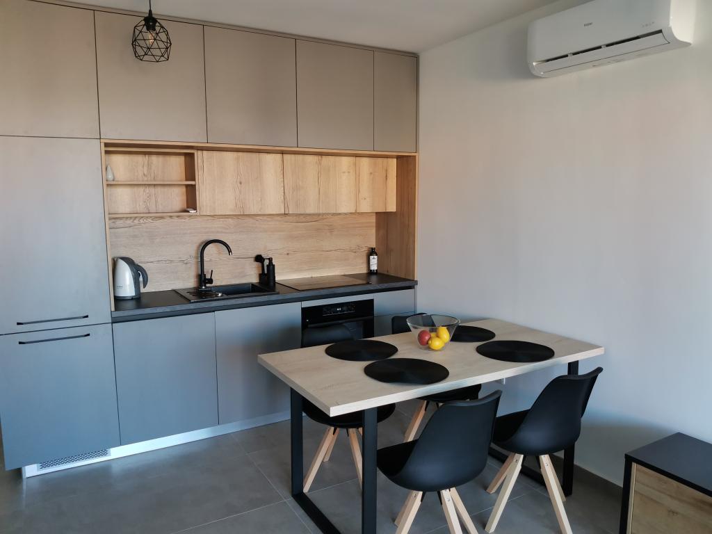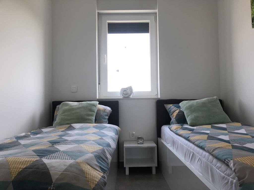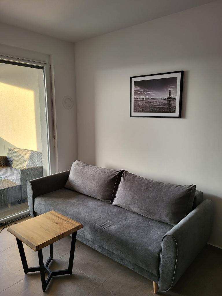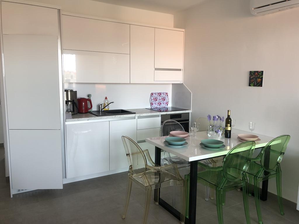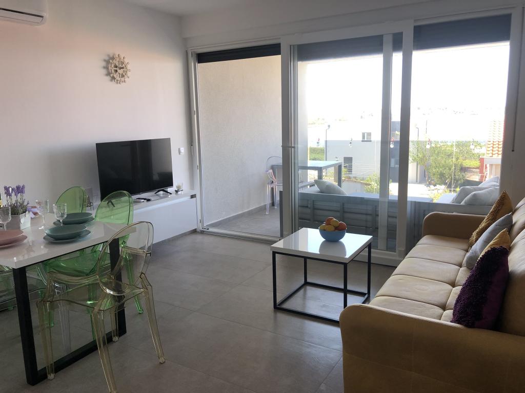 Moderni apartmani u novoj stambenoj zgradi 100 metara od mora, sa privatnim parkingom. Apartmani imaju 52 kvadrata, dvije spavaće sobe, potpuno opremljenu kuhinju, kupaonu s perilicom rublja, te natrkivenu namještenu terasu savršenu za opuštanje.