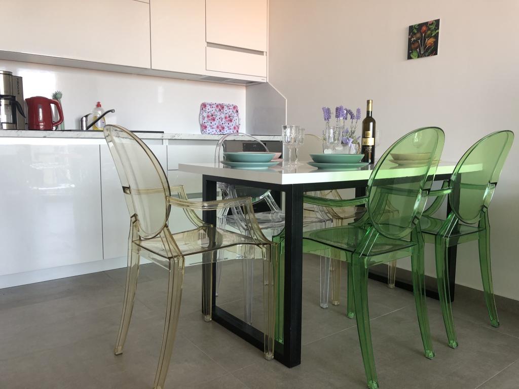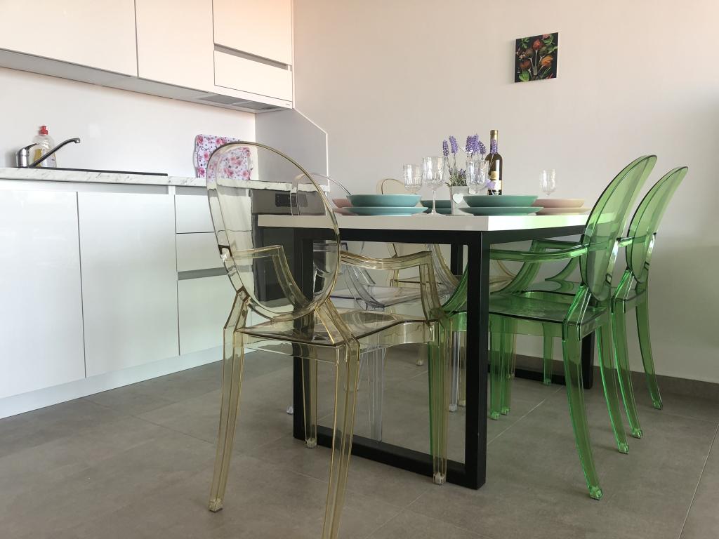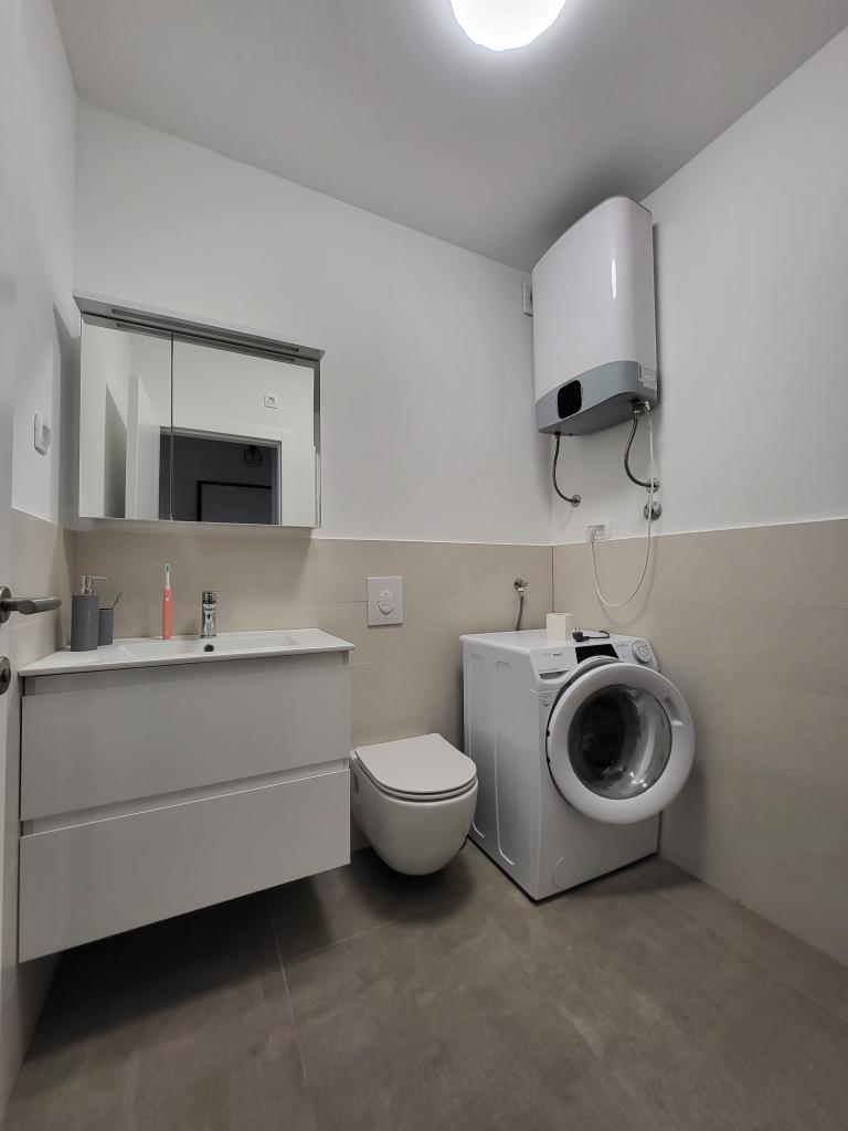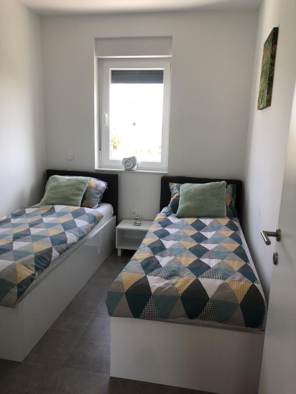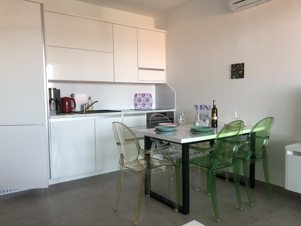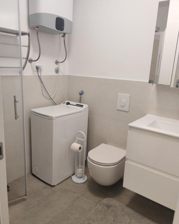 Moderni apartmani u novoj stambenoj zgradi 100 metara od mora, sa privatnim parkingom. Apartmani imaju 52 kvadrata, dvije spavaće sobe, potpuno opremljenu kuhinju, kupaonu s perilicom rublja, te natrkivenu namještenu terasu savršenu za opuštanje.