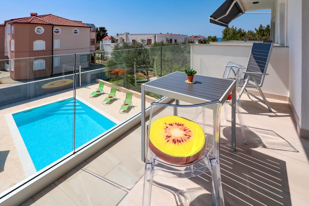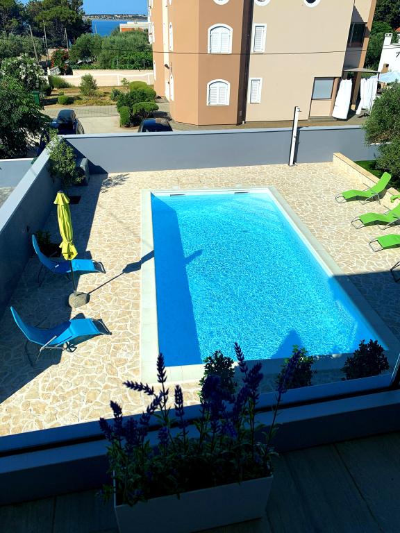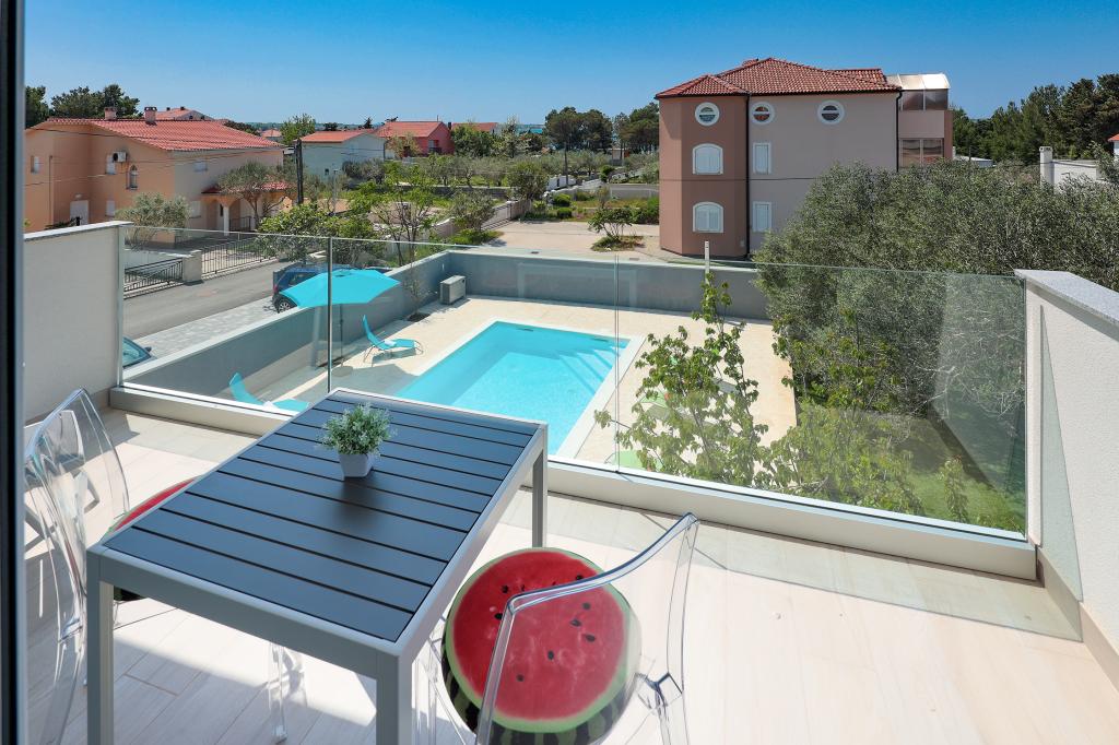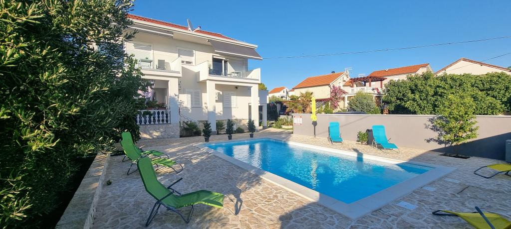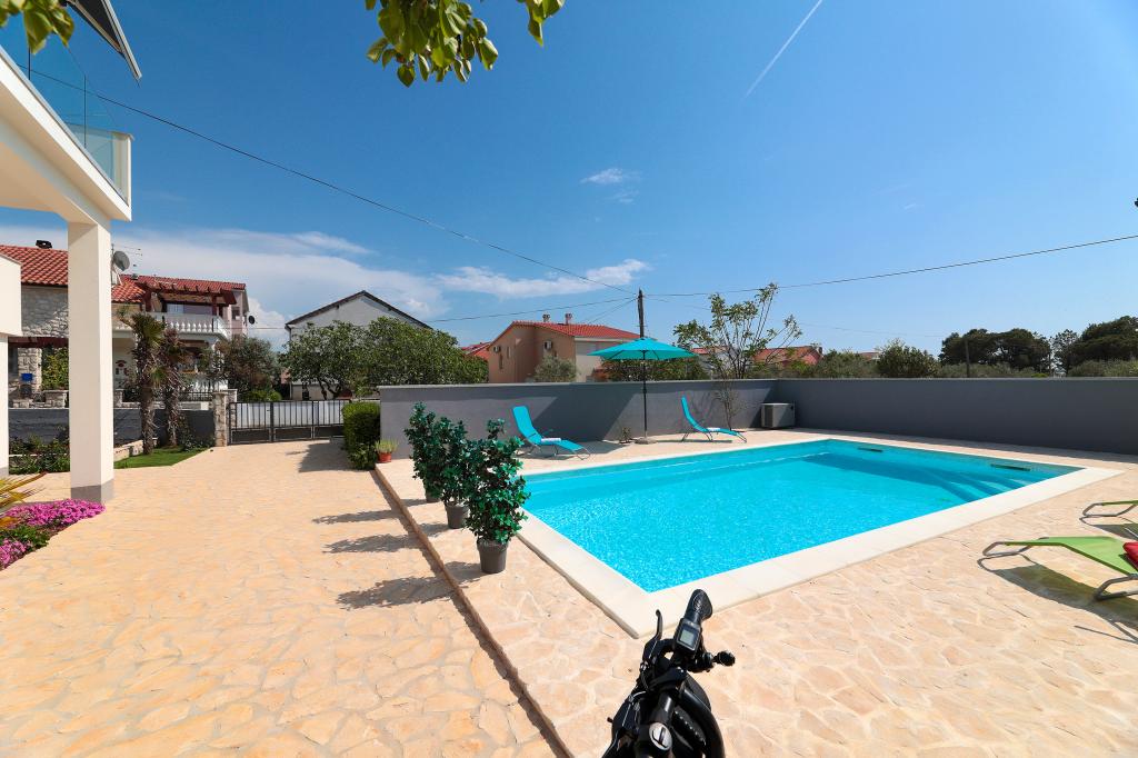 Naša kuća nalazi se na vrlo lijepom i nadasve mirnom području u pitoresknom mjestu Vrsi. Prekrasan krajolik, lijepa priroda, zanimljiva kultura i zdrava klima karakteristike su koje nas izdvajaju od drugih mjesta. Glavna plaža je vrlo blizu naše kuće i do nje se može doći kratkom šetnjom (80 metara ili 2 minute hoda). Kuća ima dva moderno uređena apartmana izgrađena 2019. godine. Veći apartman "Alan 3" ima 4 zvjezdice i idealan je za velike obitelji do 6 osoba, dok je manji apartman "Alan 2" s 3 zvjezdice namijenjen obiteljima s najviše dvoje djece ili može postati romantično utočište za zaljubljene parove. Svaki apartman ima balkon s pogledom na prekrasnu uvalu i veliki grijani bazen okružen s jedne strane lijepo uređenim vrtom s cvijećem i agrumima, a s druge malim maslinikom koji pruža ugodnu hladovinu u vrućim ljetnim danima. Terasa sa garniturom za sjedenje pruža opuštajuće trenutke tijekom dana ili ljetnih večeri.
