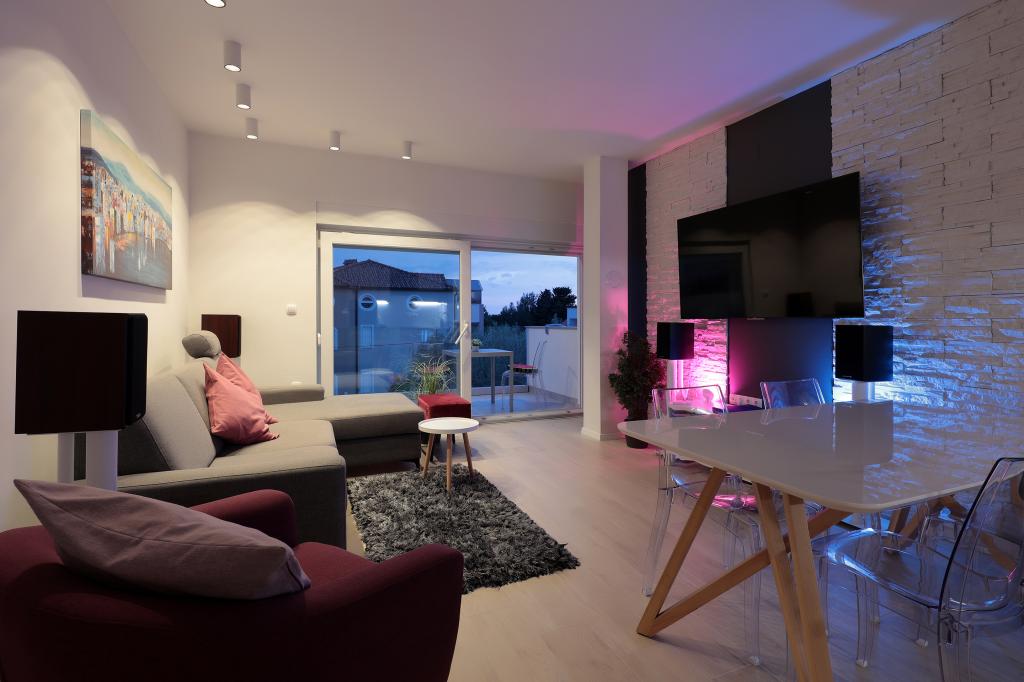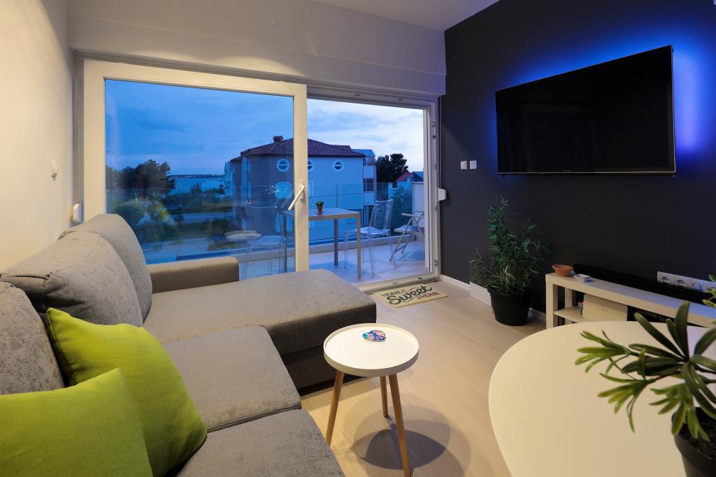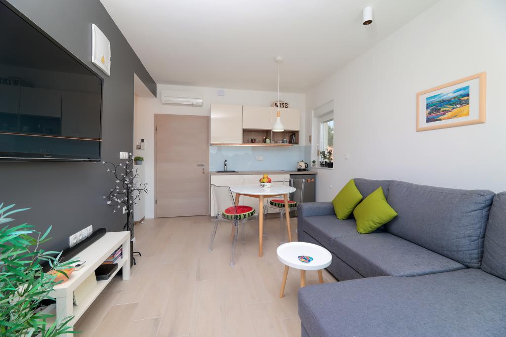 Apartmani su luksuzno opremljeni sa inverterskim Mitsubishi klima uređajima u svakoj prostoriji, TV velike dijagonale sa svim europskim satelitskim programima, Netflix, modernom kuhinjom s indukcijskom pločom za kuhanje, kupaonicom s tuš kabinama, velikom modernom balkonskom tendom koja se diže i spušta na struju, a veliki stan "Alan 3" ima radni stol sa 4K monitorom velike dijagonale. Također možete iznajmiti i električne bicikle dometa preko 60 km sa jednim punjenjem baterije.