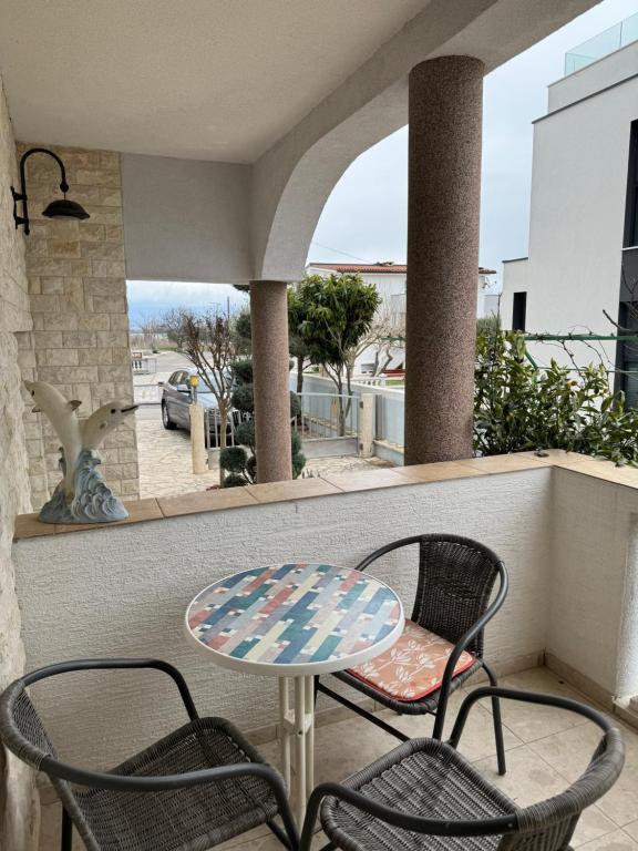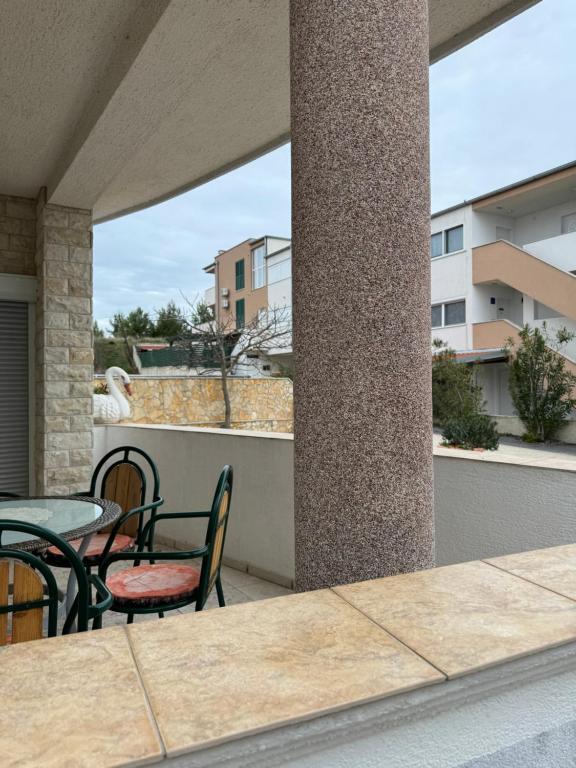 Na otoku Viru, svega 150 metara od mora, nalaze se dva apartmana kapaciteta do 5 osoba. Apartmani su moderno opremljeni, klimatizirani i prilagođeni udobnom boravku.  Svaki apartman ima vlastitu terasu s prostorom za sjedenje, a u ograđenom dvorištu gostima su na raspolaganju privatni parking i grill.  Blizina mora i plaže, zajedno s praktičnim sadržajima, čine ove apartmane pogodnim izborom za obitelji i manje grupe prijatelja koji traže smještaj u neposrednoj blizini svih glavnih sadržaja. Apartmani su pogodani za smještaj do 5 osoba. Sastoje se od dvije spavaće sobe, u apartmanima se nalazi kupaonica s tušem i perilicom rublja, te kompletno opremljena kuhinja povezana s dnevnim boravkom. Za opuštanje i boravak na otvorenom tu je i terasa s prostorom za sjedenje. Apartmani su klimatizirani i moderno uređeni, idealani za obiteljski odmor ili boravak u manjoj grupi prijatelja.