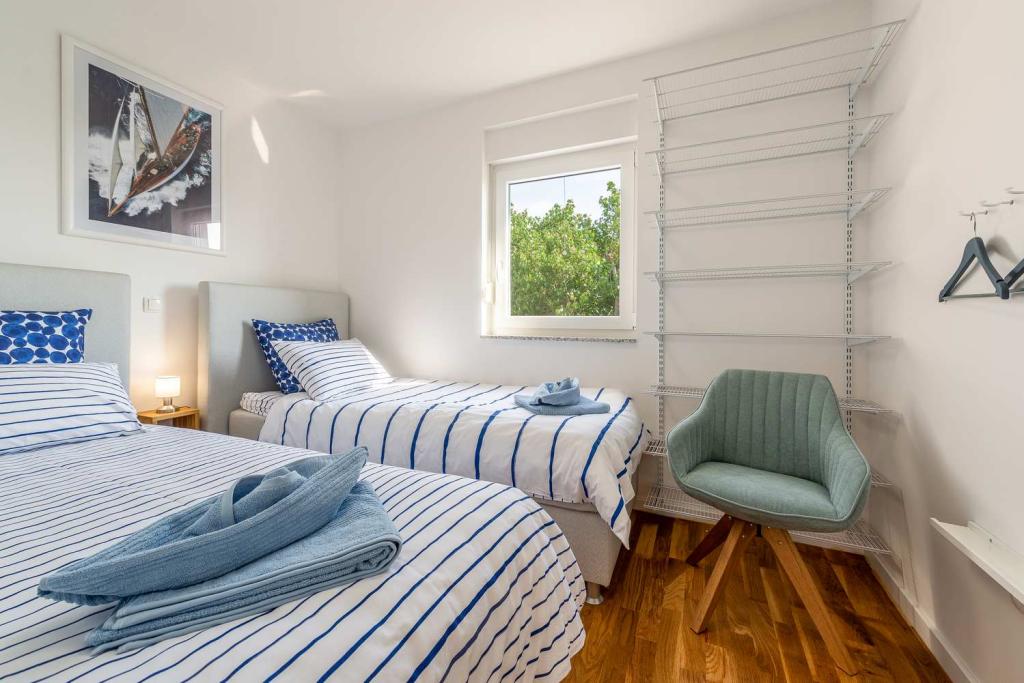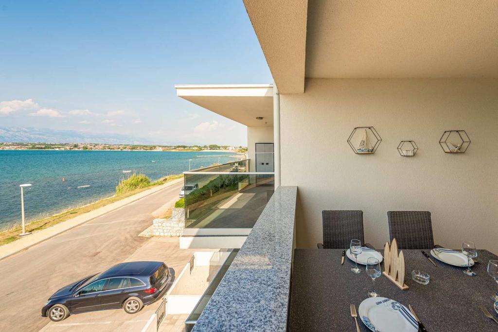 PRVI RED od mora ! 10 metar od pjesacki plaza. 5 minutes od stari grad Nin. moderan apartman, lijepo uređen, vrlo dobro opremljena kuhinja (perilica za suđe, toster, kuhalo za vodu, električni aparat za kavu, mikrovalna pećnica, hladnjak i zamrzivač, pećnica, 4 indukcijske ploče za kuhanje. 1 spavaća soba s bračnim krevetom + 1 spavaća soba s 2 kreveta. tuš i perilica rublja. Fantastic pogled na moru od vasa terasa.