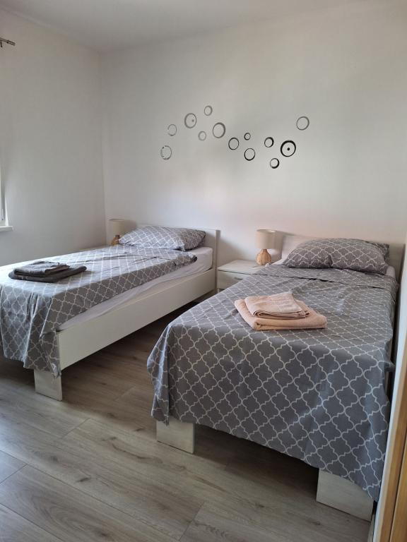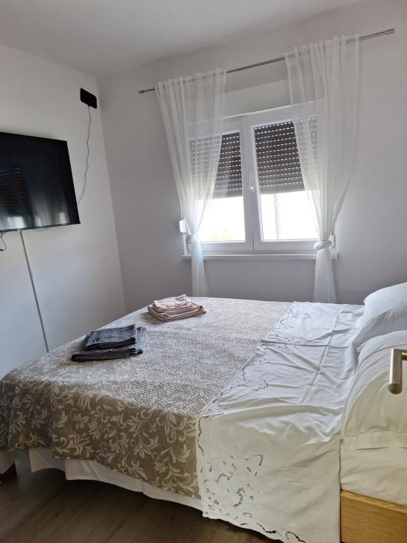 Apartmani se nalazi u mjestu Nin -naselje Ždrijac u mirnom predjelu 150 m udaljenosti od plaže tj. 5 minuta hoda te 400 m udaljenosti od grada tj.10 do 15 minuta hoda pješačkom stazom. apartman 1... sastoji se od 3 sobe od kojih je jedna soba opremljena sa televizorom te jedna soba(dnevni boravak opremljen sa televizorom i zasebnim wc (u kojem se nalazi veš mašina) te pomoćnim ležajem,kuhinjom opremljenom sa perilicom suđa,frižiderom sa ledenicom, mikrovalnom pećnicom kuhalom za vodu , kupaonicom sa walk.in tušem te hodnikom i terasom dok je u dvorištu rezervirano parkirno mjesto navedeni apartman registriran je za 6 osoba apartman 2..sastoji se od 2 sobe od kojih je u jednoj televizor i pomoćni ležaj, te kuhinjom ,kupaonicom i balkonom u dvorištu je osigurano parkirno mjesto . navedeni apartman registriran je za 4 osobe- u apartmanima je brzi internet i tv (netflix..) A 1 je cijena veca ako je vise od 4 osobe A2 je cijena veca ako je 4 osobe