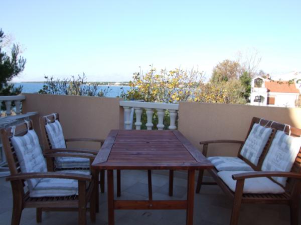 Kompletno opremljeni apartmani u mirnom naselju Zukve blizu Nina, smješteni prvi red do mora. Na raspolaganju su ležaljke za sunčanje, vanjski tuš, gril, natkrita i otvorena terasa uz samo more. Moguće su pripreme raznih morskih specijaliteta. Boravišna pristojba, upotreba klime, internet, korištenje roštilja, parking, ležaljke u dvorištu uključeni su u cijenu. A6 apartman ima kupaonu sa wcom +wc,perilicu suđa,perilicu rublja.