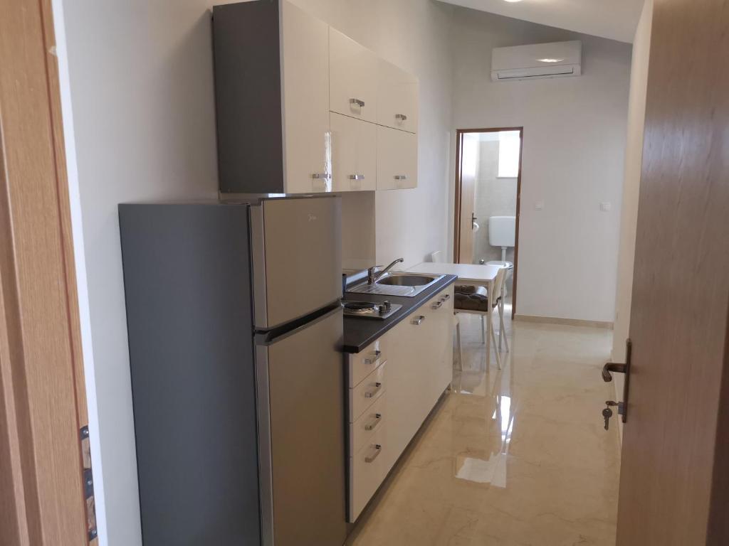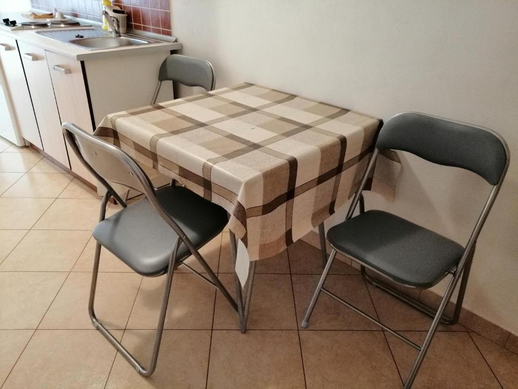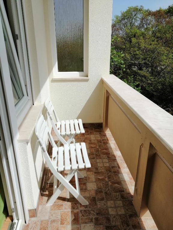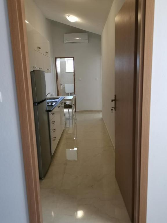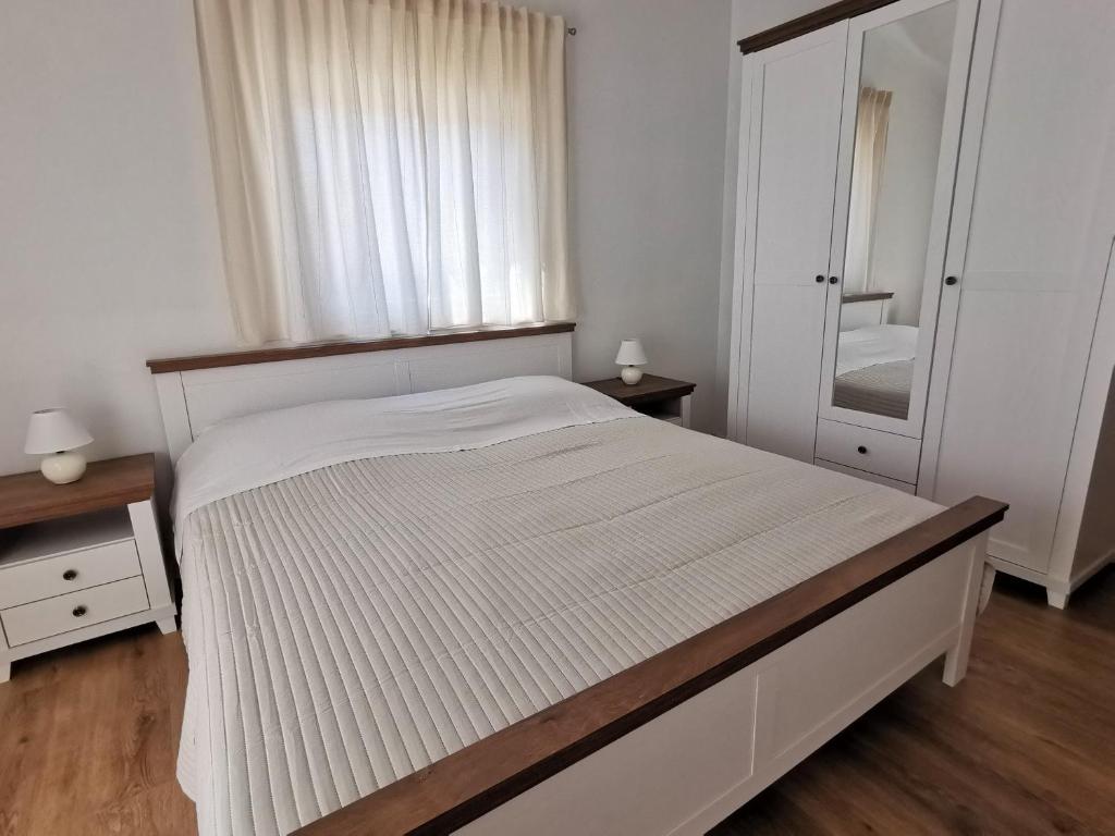 Obiteljska kuća smještena je u mirnom dijelu Nina, na putu do Kraljičine plaže - Ninskog blata, od koje je udaljena samo 5 minuta hoda. Naši apartmani s jednom spavaćom sobom klimatizirani su i opremljeni kuhinjom, kupaonicom, balkonom ili terasom s prekrasnim pogledom na more i plažu. Do otoka (centra) može se doći pješice, šetajući uz more, a svi ostali sadržaji su u blizini (restorani, trgovine, pošta, banka...).