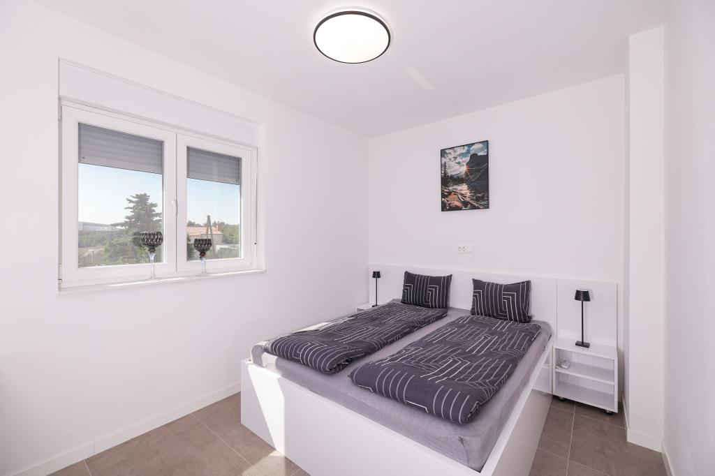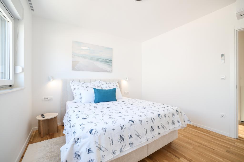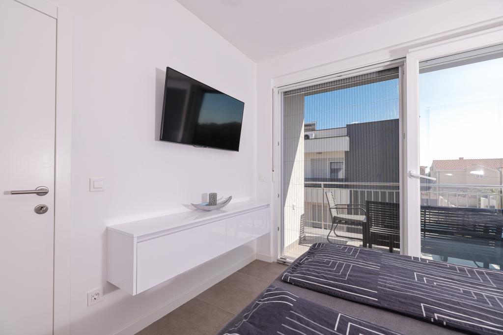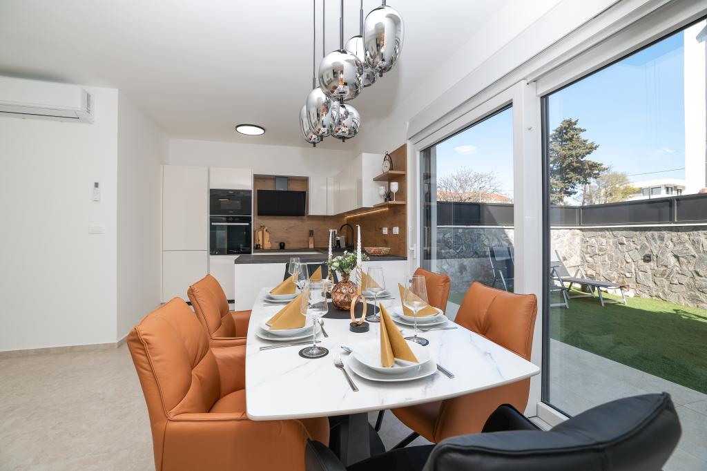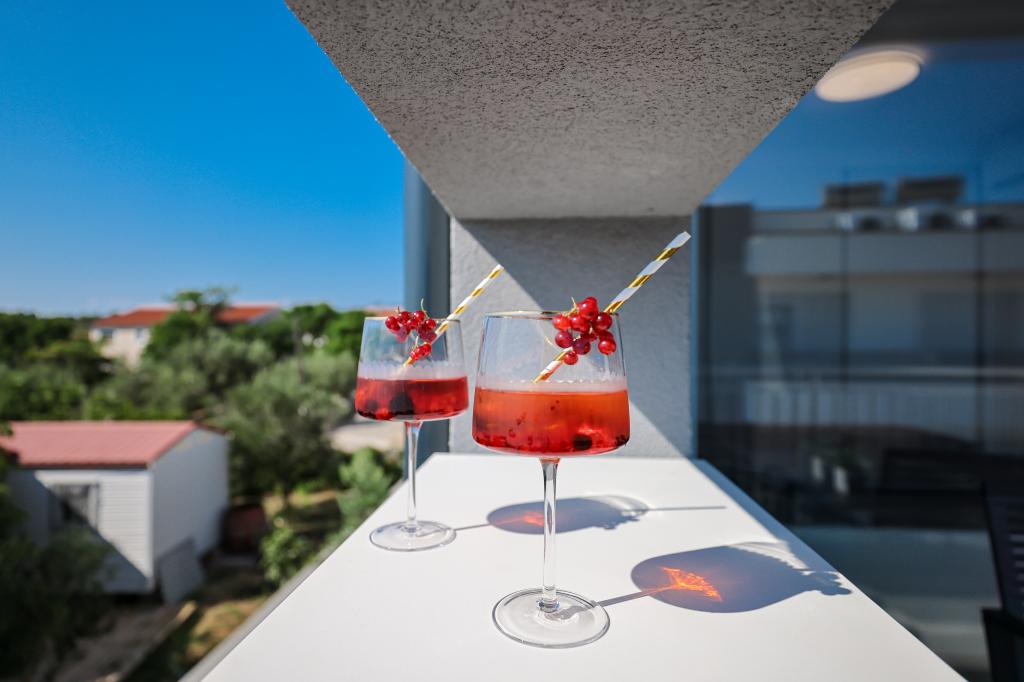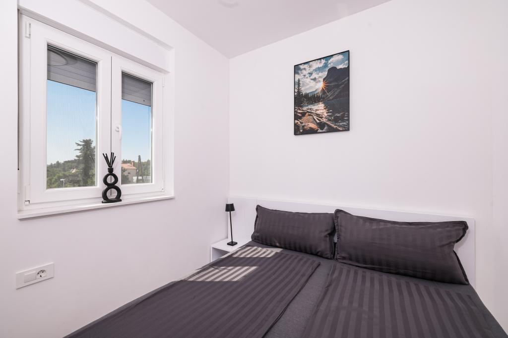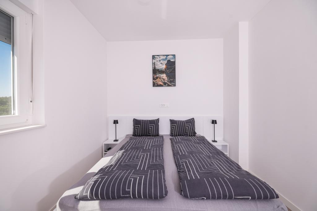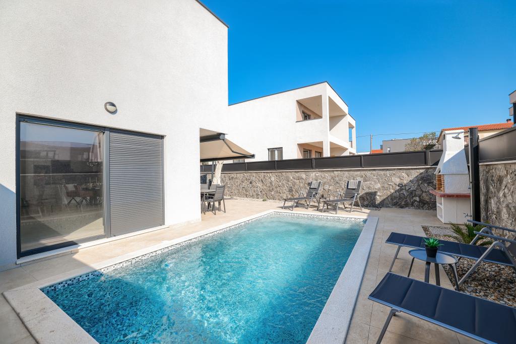Moderan i potpuno uređen trosoban apartman u mirnom i tihom dijelu naselja Vrsi. Objekt se nalazi 800 metara od mora, ima 3 spavaće sobe opremljene klima uređajem i TV-om, dvije kupaone, prekrasnu terasu sa masažnom kadom, stolom za objedovanje i ležaljkama za sunčanje. Kuhinja je potpuno opremljena, a u zajedničkom prostoru dostupan je još jedan TV i klima uređaj. Za grupe 6+2 moguća su 2 pomoćna ležaja.