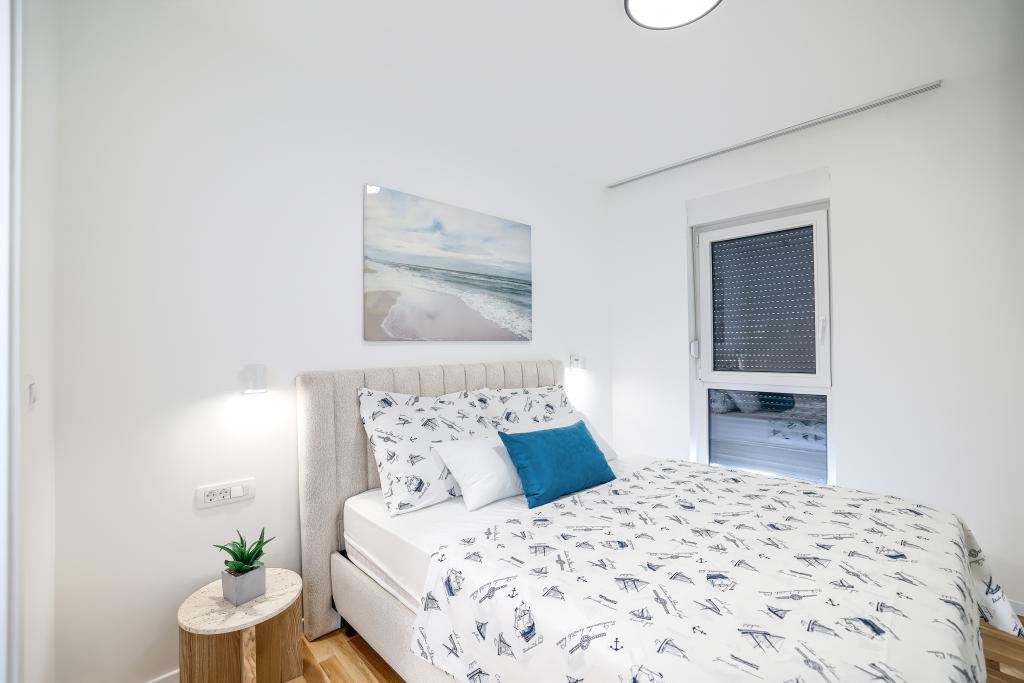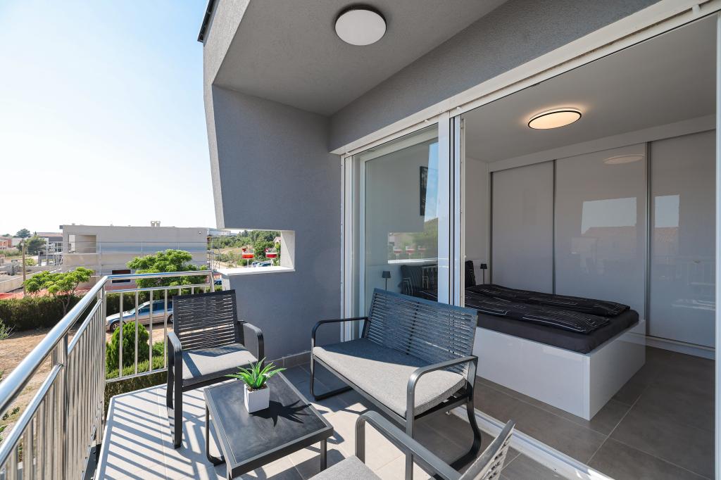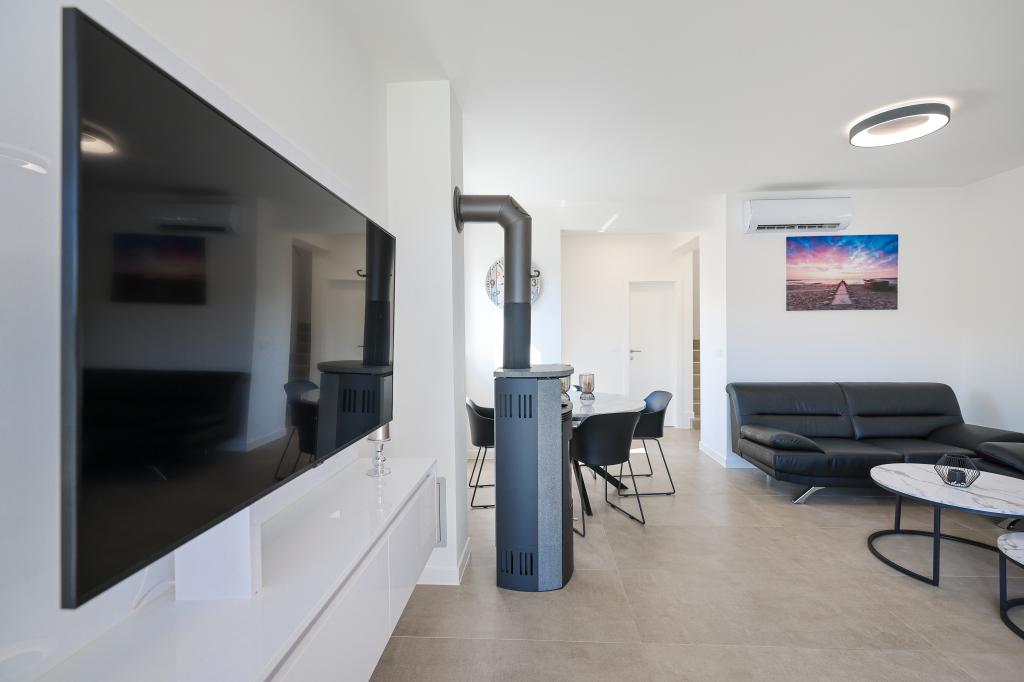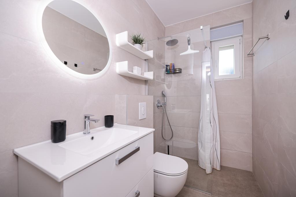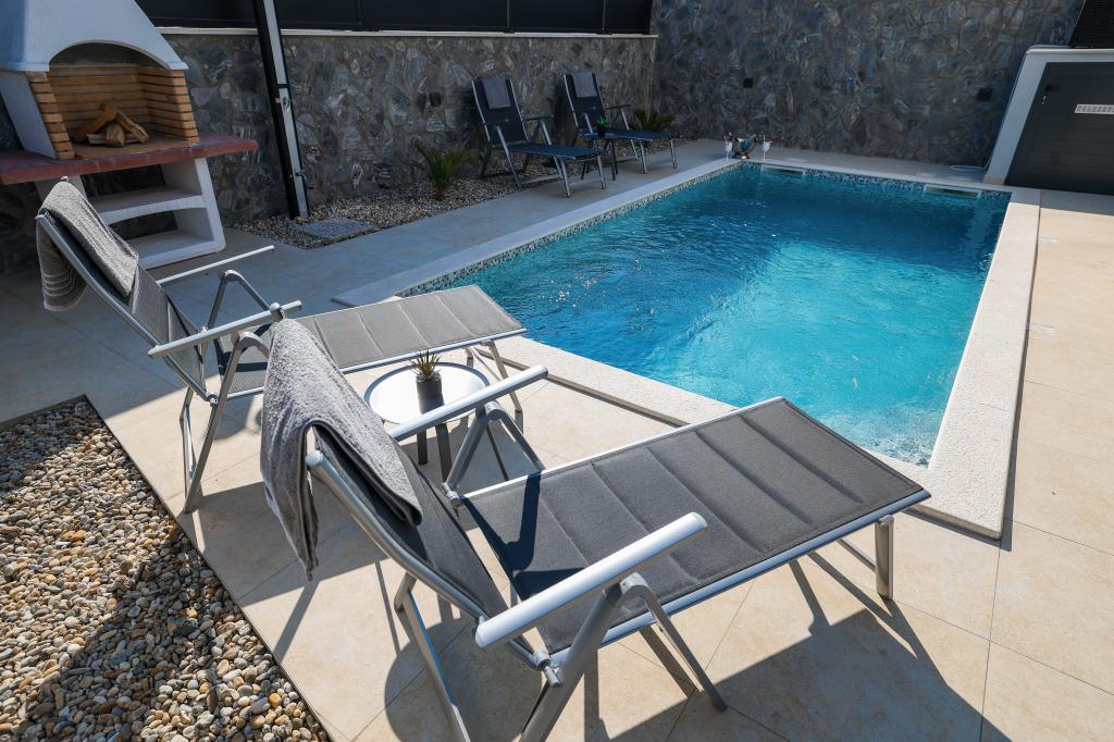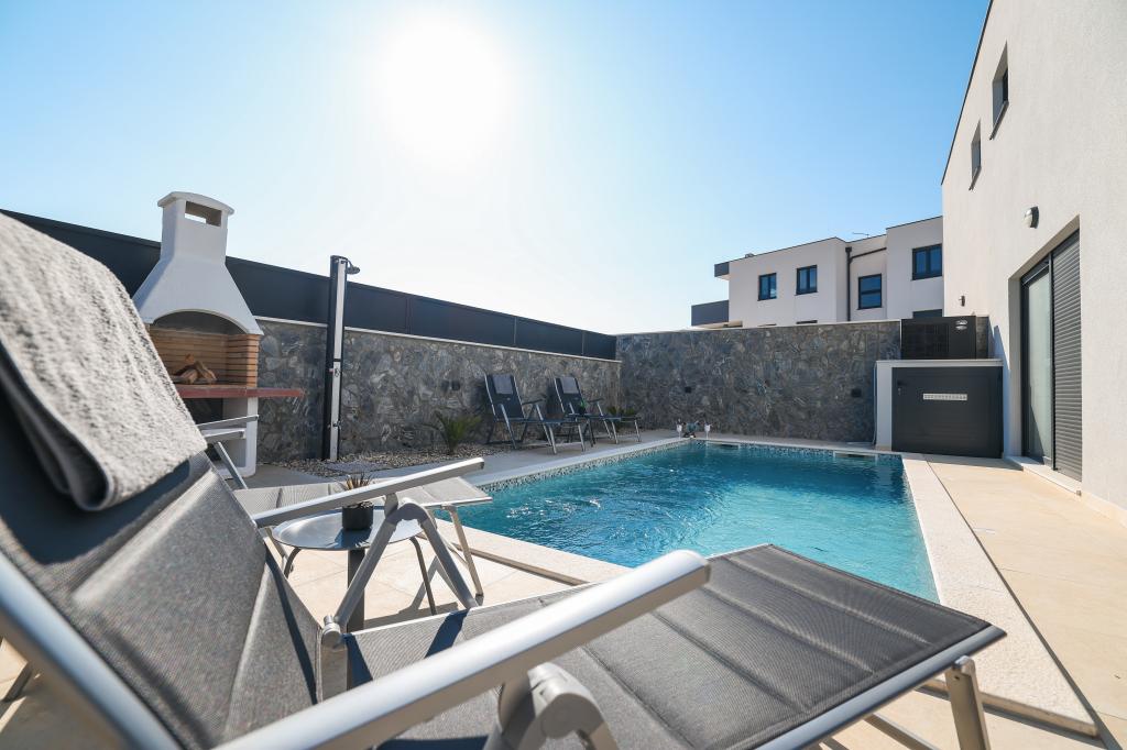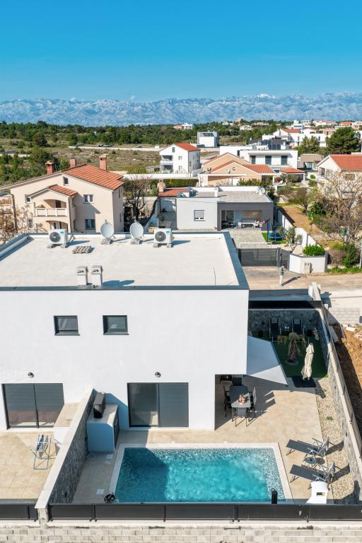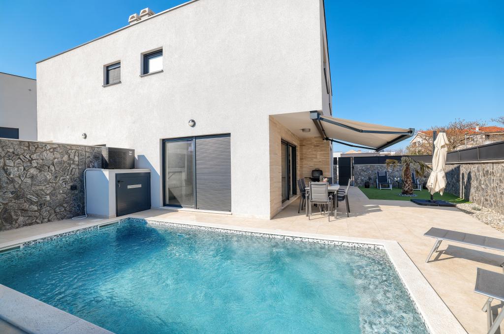 Moderan i potpuno uređen trosoban apartman u mirnom i tihom dijelu naselja Vrsi. Objekt se nalazi 800 metara od mora, ima 3 spavaće sobe opremljene klima uređajem i TV-om, dvije kupaone, prekrasnu terasu sa masažnom kadom, stolom za objedovanje i ležaljkama za sunčanje. Kuhinja je potpuno opremljena, a u zajedničkom prostoru dostupan je još jedan TV i klima uređaj. Za grupe 6+2 moguća su 2 pomoćna ležaja.