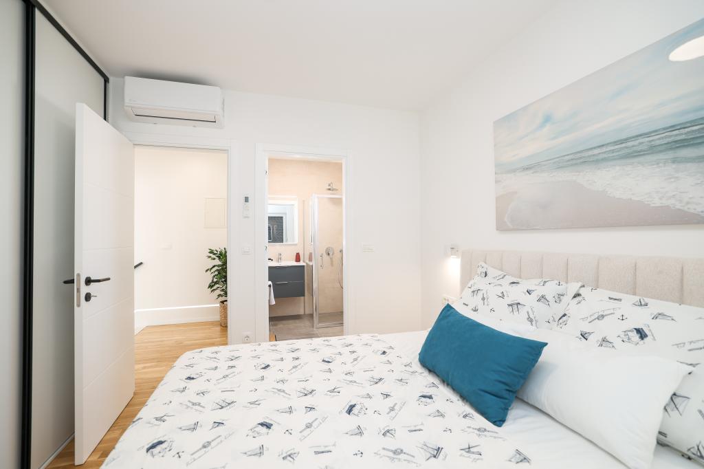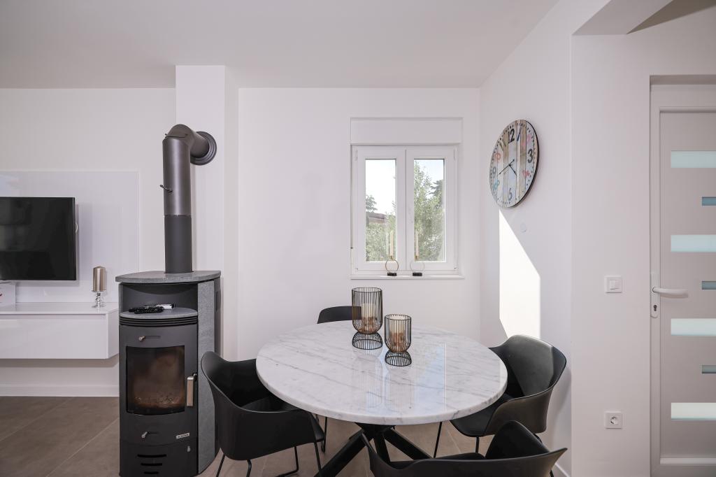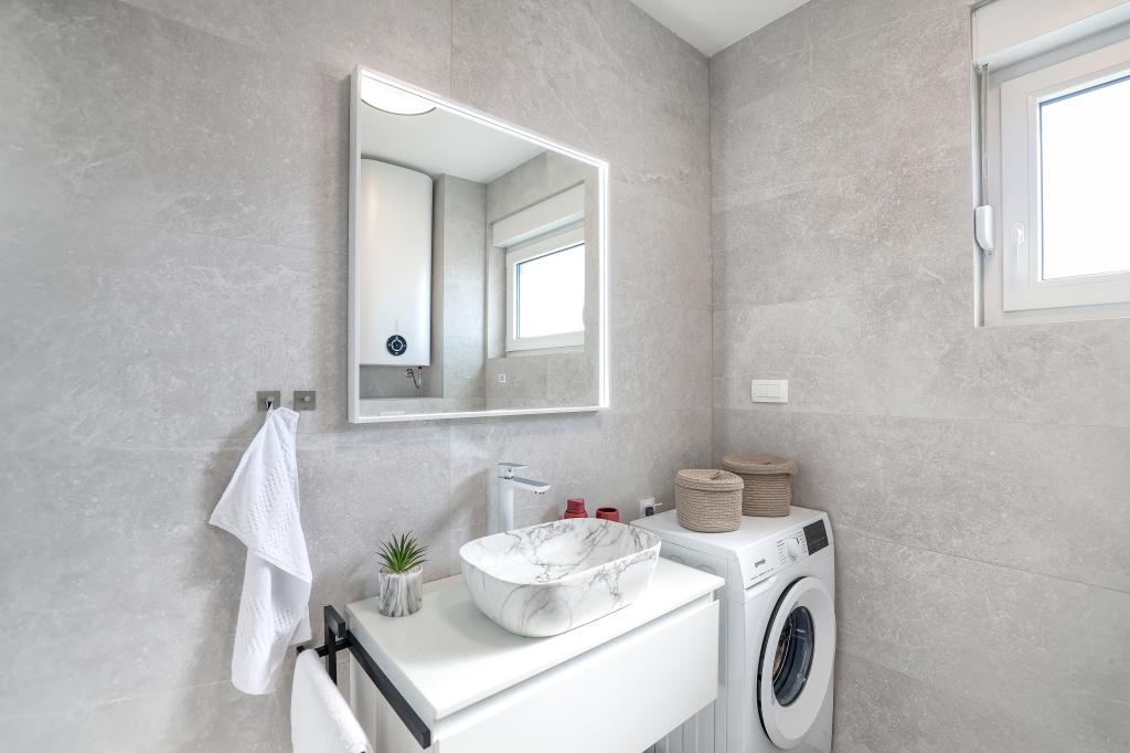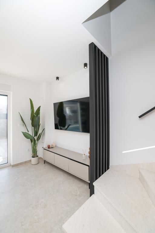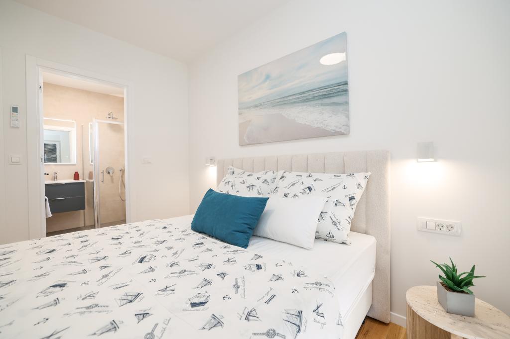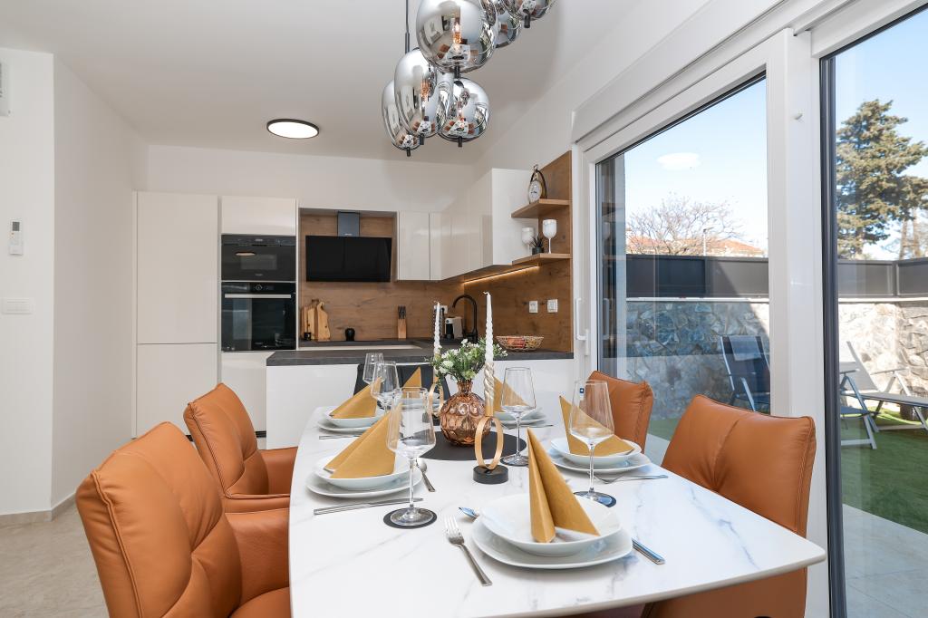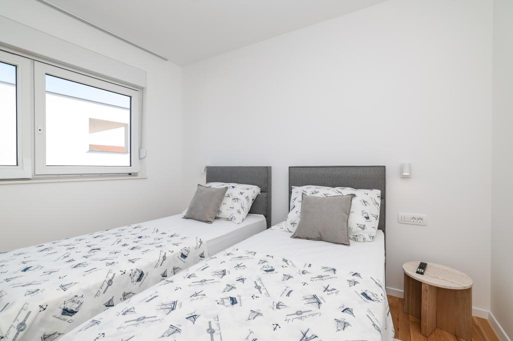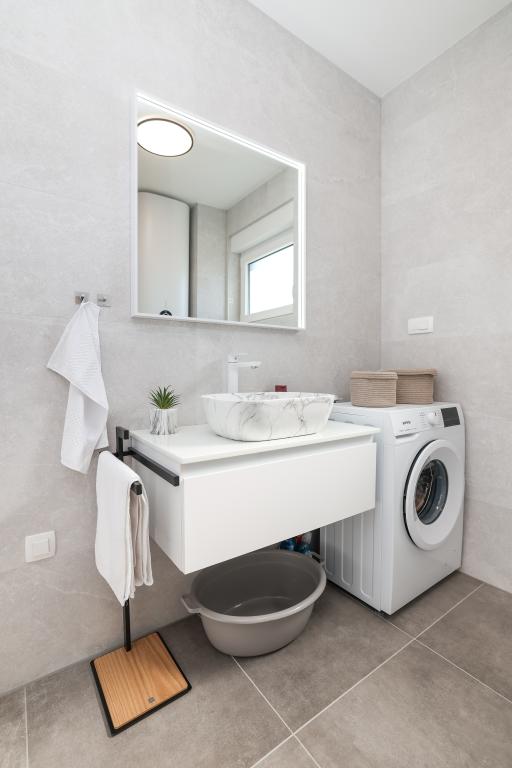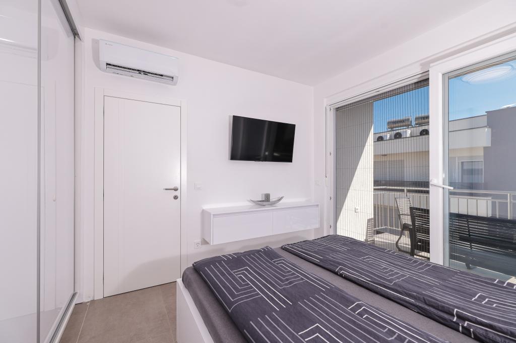 Moderan i potpuno uređen trosoban apartman u mirnom i tihom dijelu naselja Vrsi. Objekt se nalazi 800 metara od mora, ima 3 spavaće sobe opremljene klima uređajem i TV-om, dvije kupaone, prekrasnu terasu sa masažnom kadom, stolom za objedovanje i ležaljkama za sunčanje. Kuhinja je potpuno opremljena, a u zajedničkom prostoru dostupan je još jedan TV i klima uređaj. Za grupe 6+2 moguća su 2 pomoćna ležaja.