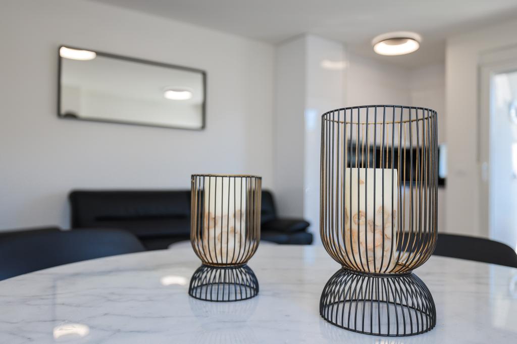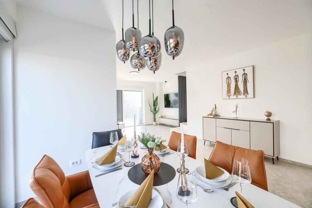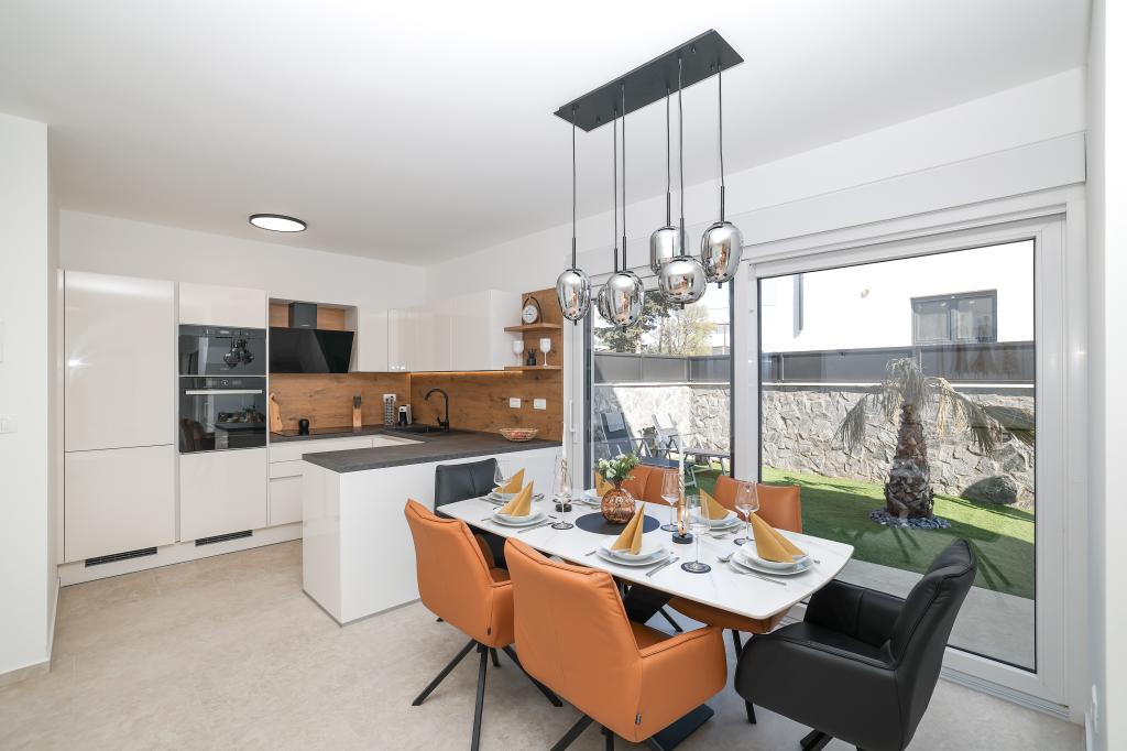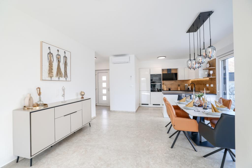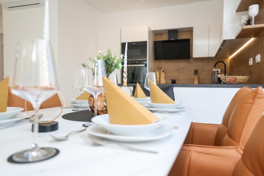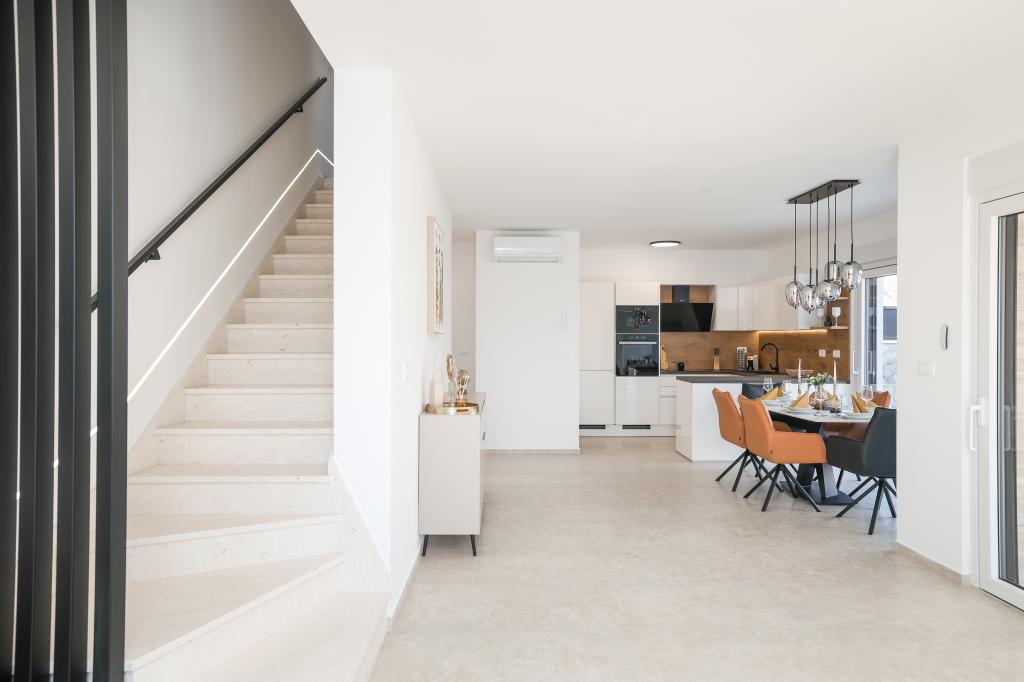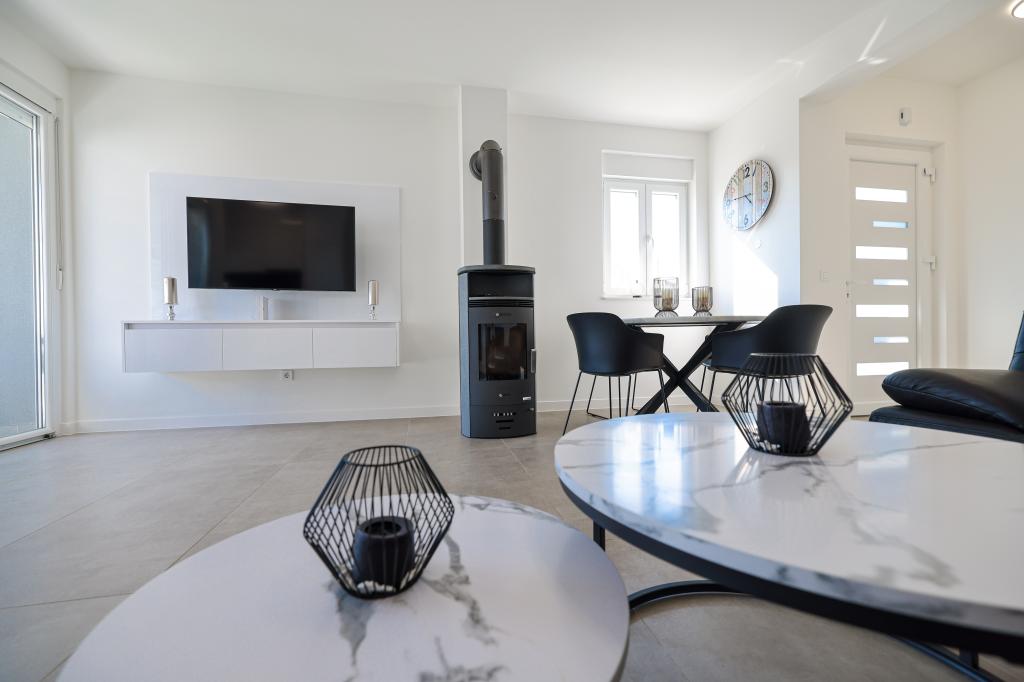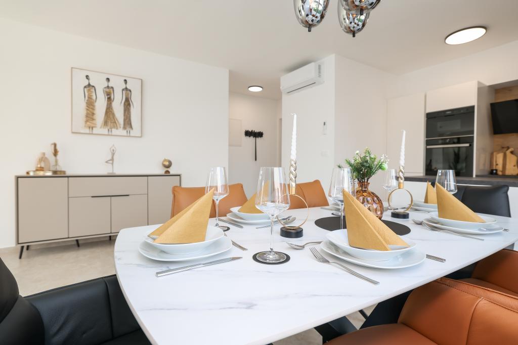 Moderan i potpuno uređen trosoban apartman u mirnom i tihom dijelu naselja Vrsi. Objekt se nalazi 800 metara od mora, ima 3 spavaće sobe opremljene klima uređajem i TV-om, dvije kupaone, prekrasnu terasu sa masažnom kadom, stolom za objedovanje i ležaljkama za sunčanje. Kuhinja je potpuno opremljena, a u zajedničkom prostoru dostupan je još jedan TV i klima uređaj. Za grupe 6+2 moguća su 2 pomoćna ležaja.
