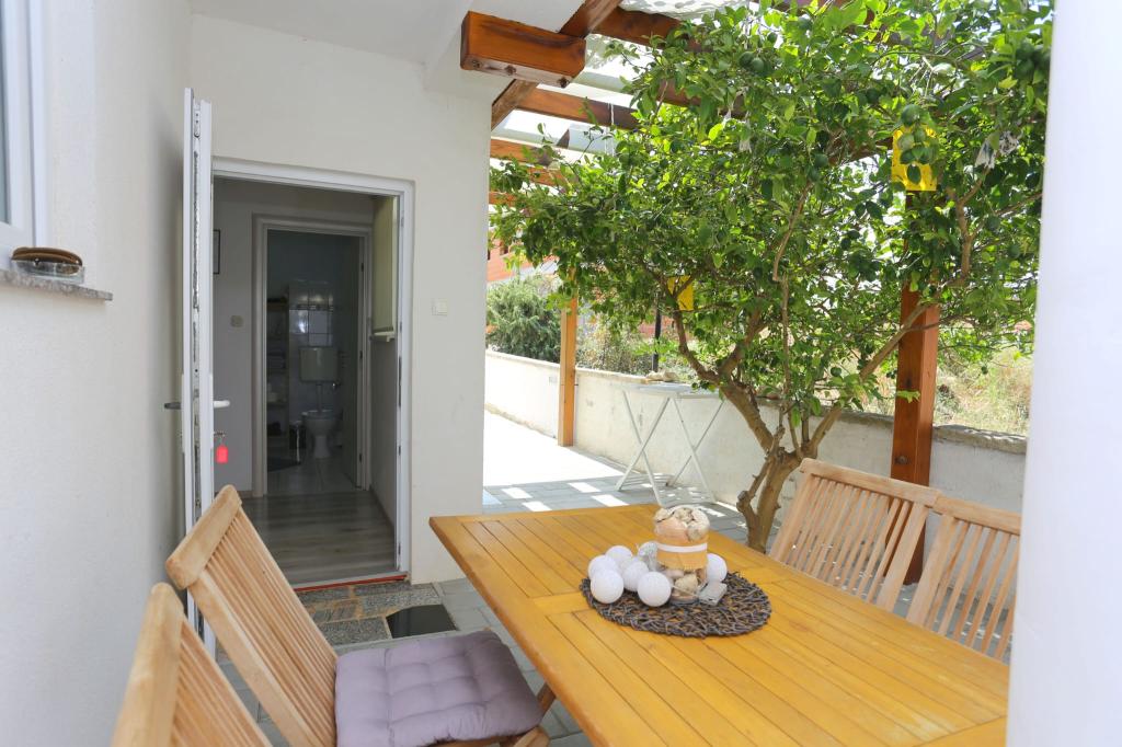 Apartmani se nalaze u kući koja ima ukupno 4 smještajne jedinice , kao i postojeći parking za 6 vozila. 10 minuta hoda je do plaže kao i do najbližeg restorana i trgovine. Apartmani su kompletno namješteni i opremljeni. WiFi internet,korištenje vanjskog tuša,klima uređaj,posteljina ,ručnici Gost imaju na raspolaganju roštilj na drveni ugljen i peku. (u koliko si žele pripremati jela sa roštilja (gradela) ili peke).