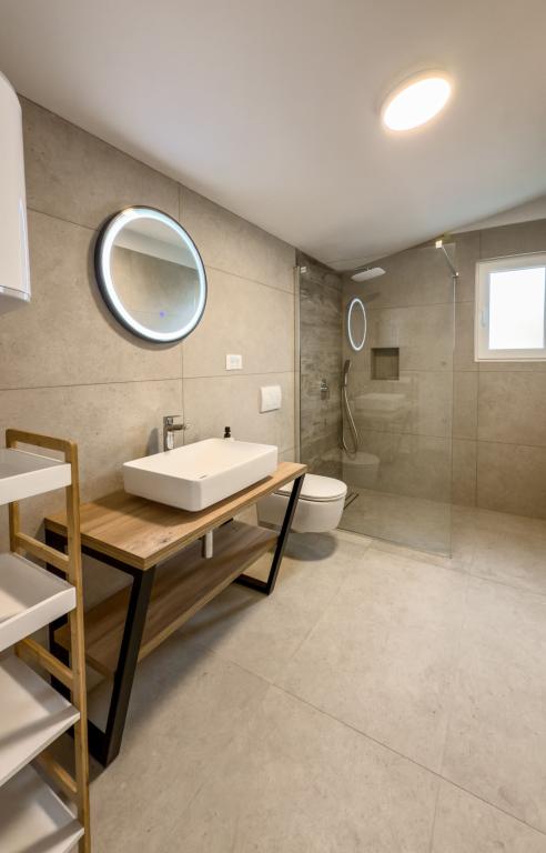 Apartmani Sabun nude novoobnovljene, prostrane i potpuno opremljene apartmane smještene svega 15 metara od mora. Apartman 1 nalazi se u prizemlju (100 m² uključujući terasu) i ima privatno dvorište, dok se Apartman 2 nalazi na katu (70 m² s balkonom od 50 m²), što ih čini idealnima za obitelji i grupe prijatelja. Svaki apartman ima dvije spavaće sobe, dnevni boravak, kuhinju i kupaonicu, a gostima su na raspolaganju klima uređaj, TV i Wi-Fi. Objekt također nudi privatni parking i vanjski tuš. Poseban doživljaj pružaju čarobni zalasci sunca i prekrasan pogled na Velebit.