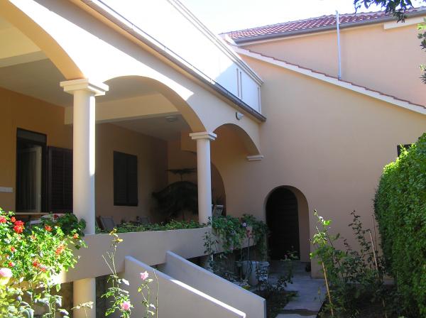 Apartmani su smješteni u samom centru Nina, na otoku, prvi red do mora. Imaju zaseban ulaz, balkone i lijepi pogled na more i plaže. Potpuno su opremljeni. To je mirno područje uz more. Ispred obiteljske kuće nalazi se parkiralište i uz more posjedujemo vez za manje brodove. Grad Nin okružen je pješčanim plažama. U centru ima više restorana, marketa, u blizini je banka, pošta, ambulanta, ljekarna.U Ninu nema industrijskih objekata tako da nema zagađenja mora i okoliša. U neposrednoj blizini nalazi se turističko naselje Zaton sa svim popratnim sadržajima za dnevni i noćni odmor. Poznati nacionalni parkovi su mjesta za jednodnevne izlete: Paklenica, Slapovi Krke, Plitvice, Kornati.