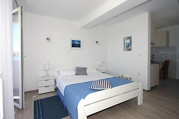 Apartmani se nalaze u starom dijelu grada Nina, na otočiću, 10 m od mora te u blizini centra grada i pješčane plaže Ždrijac, koja je zbog svoje plitkoće idealna za obitelji s malom djecom, a poznata je i po kite-surfing školi. Druga pješčana plaža zvana Kraljičina plaža, udaljena je 2 km ako idete cestom, a poznata je po ljekovitom blatu. Svi apartmani su novouređeni, suvremeno i kvalitetno opremljeni. Studio 1 ima predivan pogled na more, idealan za parove. Studio 2 i 3 tkđ. sa zadivljujućim pogledom na pješčane plaže i planinu Velebit. Mogu primiti do 3 odrasle osobe ili 2 odrasle + 1 dijete. Soba s bračnim krevetom i sofa dimenzija 120×200. Apartman 3 i Apartman 4 su površinom veći, namijenjeni su smještaju do 4 osobe, sastoje se od odvojene sobe s bračnim krevetom i dnevne sobe sa sofom dimenzija 160x200. Ap. 4 ima i dvije lođe s pogledom na vrt i more. Svi apartmani imaju dobro opremljenu kuhinju i kupaonicu i zajedničku praonu rublja. Posteljina i ručnici se redovito mijenja