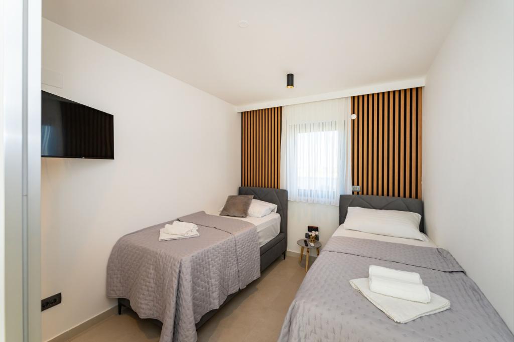 Villa LaMag. moderna tek sagrađena villa je smještena u predivnom mirnom mjestu Vrsi Zukve, koje je udaljeno 20 km od Zadra i 5 km od kraljevskog grada Nina, a od Zagreba oko 2,5 sati vožnje. Plaža je udaljena samo 3 minute hoda, najbliži restoran samo 400 metara, a supermarket manje od kilometra. Istražite prekrasne pješčane plaže Nina i Ljubača (10 minuta vožnje) ili posjetite obližnje otoke Pag i Vir, povezane mostom. Povijesni šarm starog grada Zadra, s uskim ulicama i kulturnim draguljima, udaljen je samo 25 minuta vožnje. To vaš apartman čini savršenom bazom za otkrivanje čuda ove nevjerojatne obalne regije.