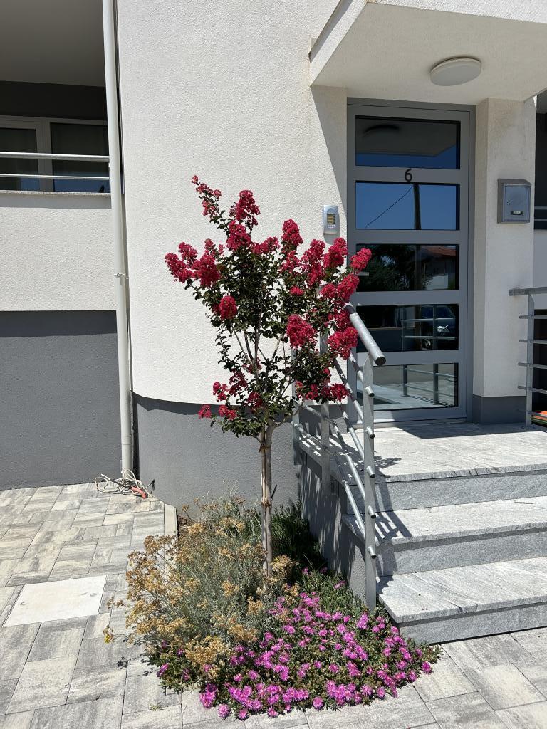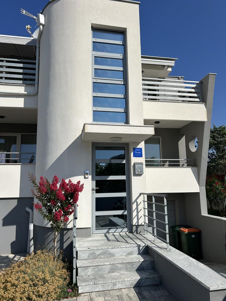Obiteljska kuća smještena je u predivnom mirnom mjestu Vrsi Mulo, koje je udaljeno 20 km od Zadra i 5 km od kraljevskog grada Nina, a od Zagreba oko 2,5 sati vožnje. Iznajmljuju se dva apartmana koja se nalaze na prvom katu kuće. Svaki apartman ima pogled na more, perilicu za suđe, perilicu za robu, dva balkona, privatno parking mjesto ispred kuće, WiFi, klimu,… Šljunčana plaža Mulo, udaljena je samo 200 m niz ulicu, na plaži su sadržaji za djecu i odrasle (park za djecu, caffe bars, odbojka na pijesku, restorani, iznajmljivanje suncobrana i ležaljki, pedalina, jet skija,…). Ostale plaže (pješčane, stjenovite i šljunčane) su također u blizini, pješčana plaža Ričina (dva beach bara, odbojka u plićaku,…), idilična šljunčana Duboka Draga okružena stijenama s kojih mladi uživaju skakati u kristalno čisto more, velika borova šuma sa šetnicom i plažama uz more sa prirodnim hladom za one koji vole mir, tišinu i netaknutu prirodu. Trgovine, mesnica, pekara, tržnica,… na manje od 5 min hoda.