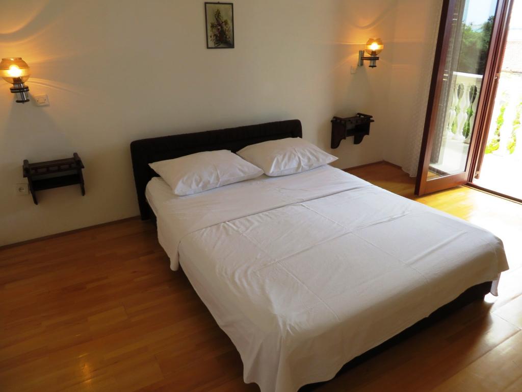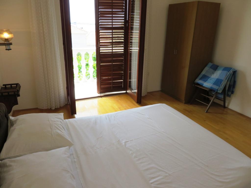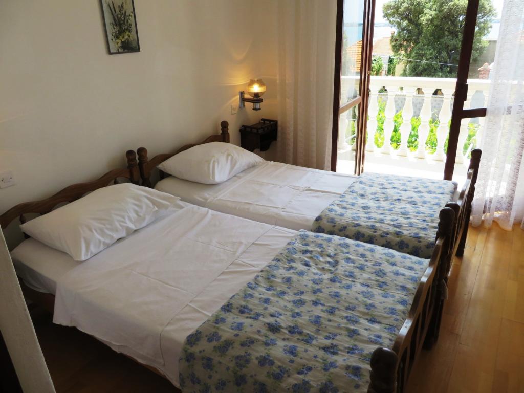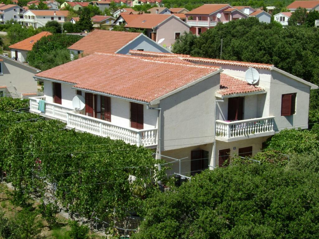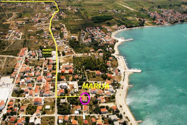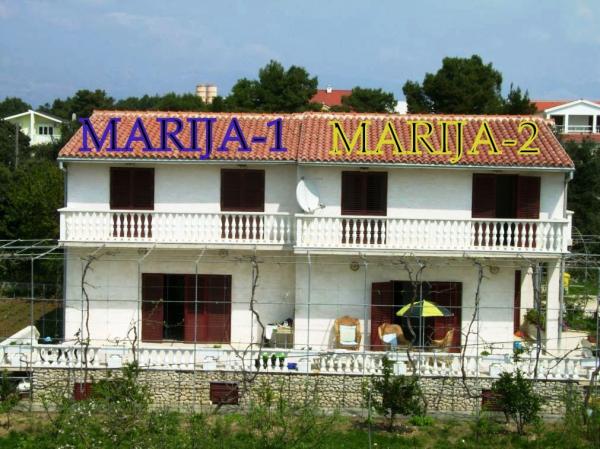 MARIJA-1 i MARIJA-2- Komforna dvojna kuća sa 2 odvojena apartmana za dvije ili više obitelji ili grupa (ukupno 16-18 osoba), sve spavaće sobe (4 4) su na prvom katu, u prizemlju je veliki dnevni boravak na svakoj strani (24m2 i 28 m2) sa stolom za 10 osoba, kuhinjom sa svim potrebnim aparatima za kuhanje i posluživanje hrane za 10 osoba, kauč na razvlačenje (za 2 odrasle osobe), SAT TV, radio CD, DVD, velike terase (32m2 31m2) s pletenim vrtnim namještajem, grill, ukupno 5 kupaonaa, 3 s kadom i 2 s tušem. Svaki apartman ima perilicu rublja. Posteljina, ručnici, kuhinjske krpe, plin, struja, voda, piće dobrodošlice i putno piće, parkiralište, WiFi, kopiranje, fax, kućni ljubimci, boravišna pristojba i završno čišćenje su uključeni u cijenu. Kuća se nalazi 80 metara od mora i 70 m između 2 ulice, tako da se mala djeca mogu sigurno igrati u dvorištu. Od 8 soba 5 ih ima balkon, 4 s izravnim pogledom na more i 1 na more i vrt.