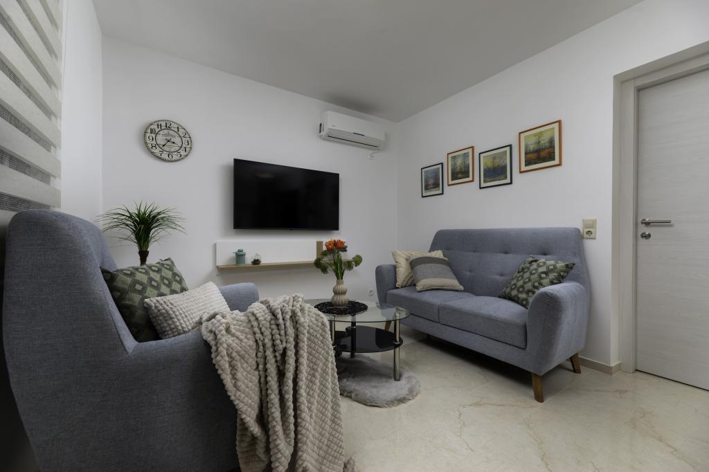 Smješten u mirnom dijelu mjesta Njivice na otoku Krku, ovaj novouređeni apartman u prizemlju nudi idealan spoj udobnosti i opuštenog mediteranskog ugođaja. Savršen je za obitelji ili manje grupe koje žele uživati u odmoru blizu mora uz mir i privatnost. Apartman ima dvije prostrane spavaće sobe, modernu kupaonicu te dodatni odvojeni toalet. U sklopu jedne od spavaćih soba nalazi se sobica s dodatnim ležajem. Potpuno opremljena kuhinja i ugodan dnevni boravak pružaju sve za opušten boravak. Posebna prednost je natkrivena terasa okružena zelenilom, idealna za jutarnju kavu, obiteljski obrok ili večernje opuštanje. Gostima su na raspolaganju klima, Wi-Fi, privatni parking, vanjski tuš i roštilj. Plaža je udaljena svega 600 metara, a u blizini su restorani, trgovine i svi potrebni sadržaji za bezbrižan odmor. Uživajte u kristalno čistom moru, šetnjama uz obalu i autentičnom otočkom ugođaju koji pruža savršenu ravnotežu između odmora i aktivnosti.