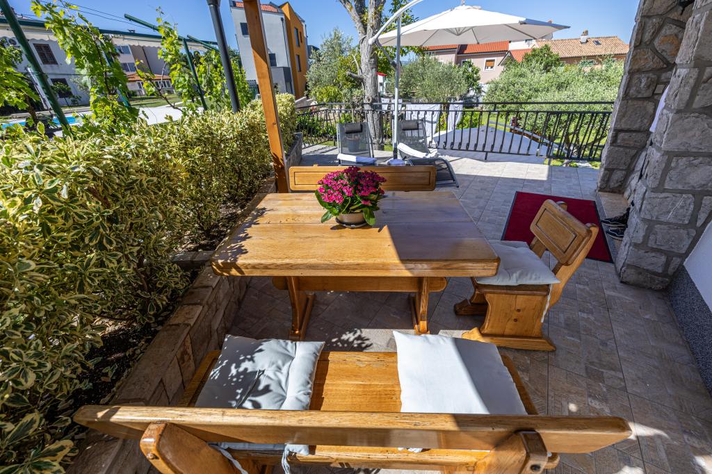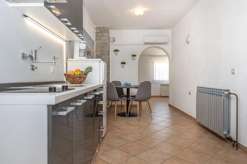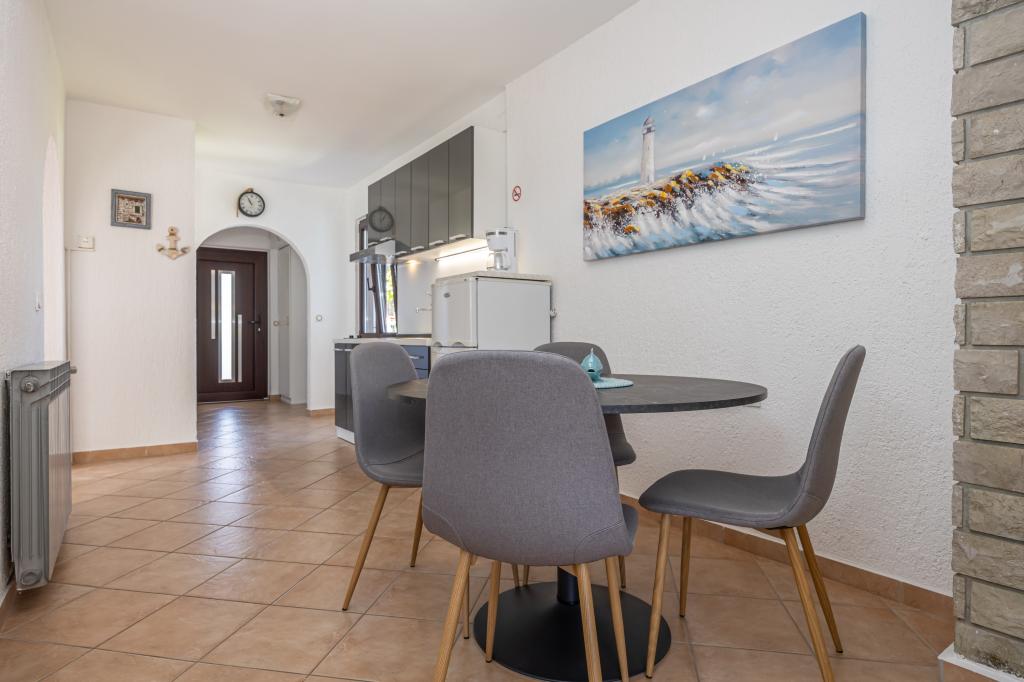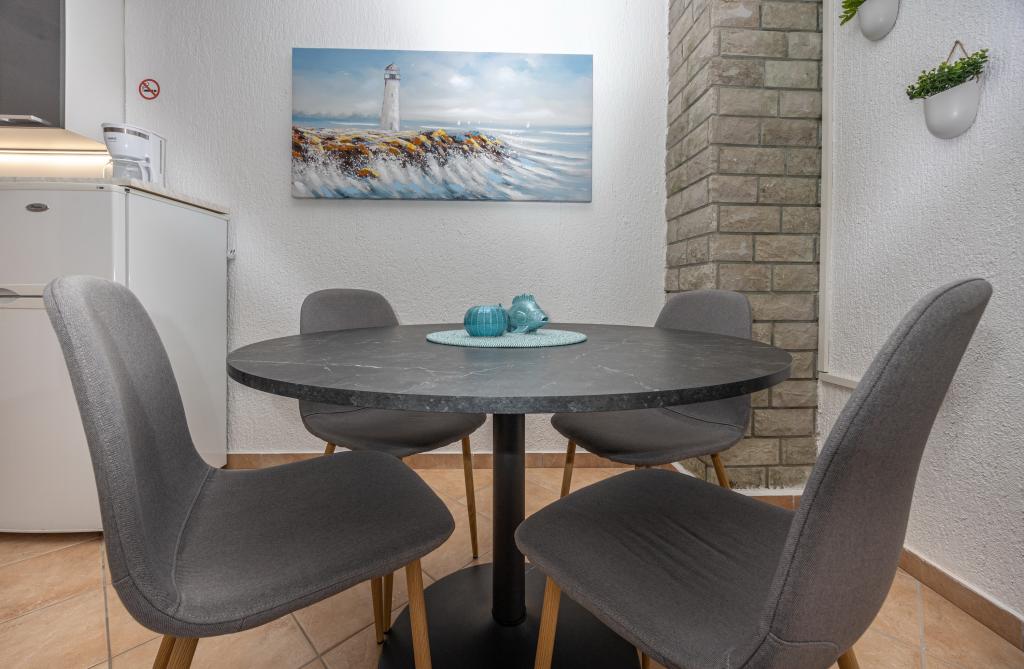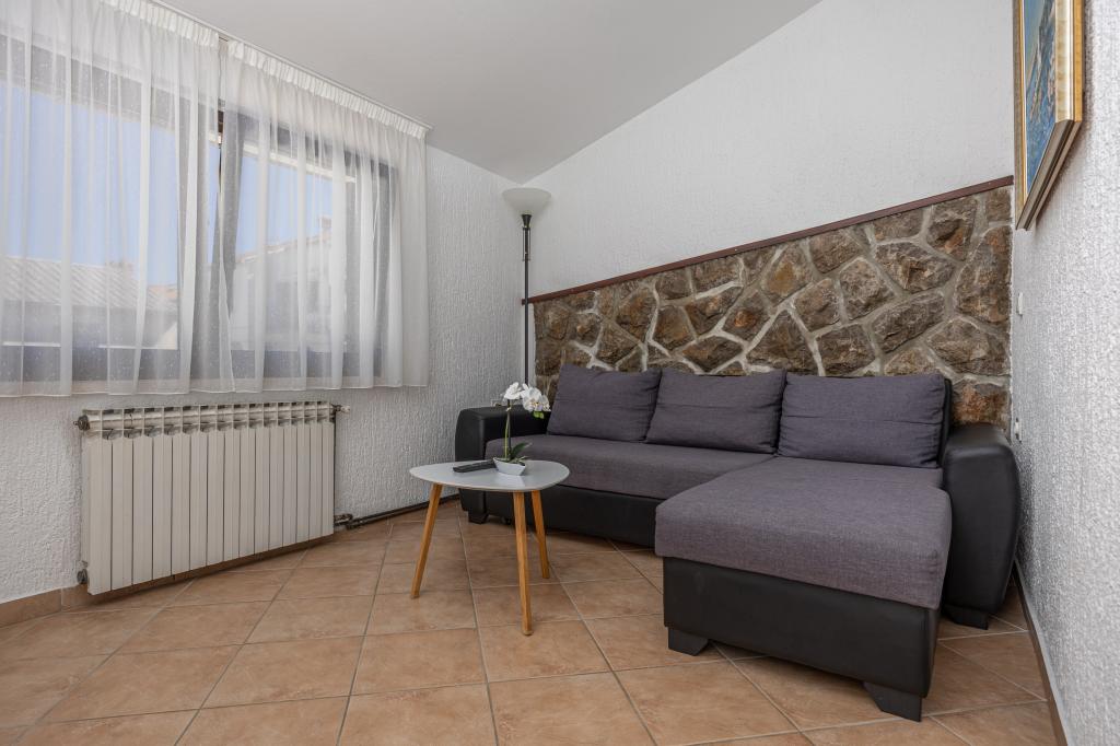 Ovaj prekrasan apartman u samom centru Njivica ima dvije spavaće sobe, kuhinju, dnevni boravak s pogledom na more, blagavaonicu i lijepu terasu s prostorom za objedovanje, a gosti mogu koristiti roštilj. Nalazi se samo 80 metara od mora sa besplatnim parkingom. Dobrodošli u srce Njivica, gdje Vas čeka idealan odmor! Na samo 80m od kristalnog čistog mora, naš apartman nudi sve što vam je potrebno za savršen bijeg. Uživajte u udobnosti naših dvije prostrane spavaće sobe, savrešene za miran san nakon dugog dana na plaži. Moderno opremljena kuhinja i elegantna blagavaonica omogućit će vam pripremu i uživanje u ukusnim obrocima. Kupaonica je potpuno opremljena. Opustite se na našoj prostranoj terasi, koja je idealna za jutarnje kave ili večernje čaše vina. Terasa je opremljena blagavaonskim stolom i dvije udobne ležaljke, gdje možete upijati sunce ili uživati u blagom povjetarcu. Otkrijte čari našeg predivnog mediteranskog vrta gdje možete koristiti roštilj.