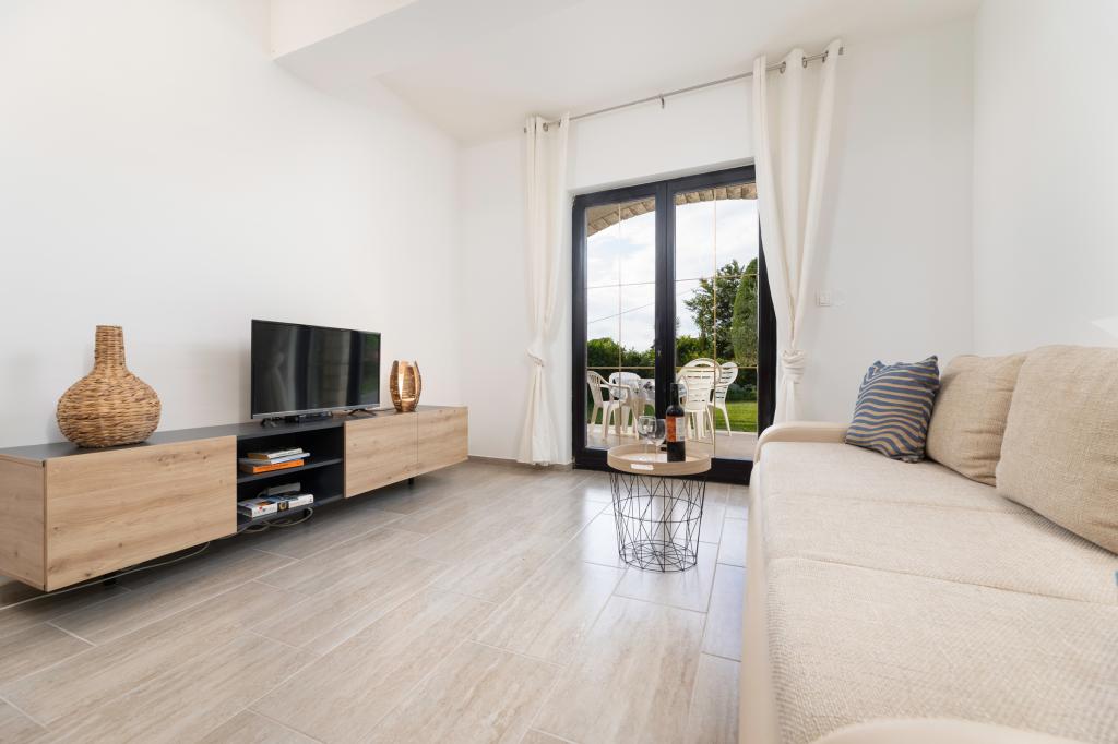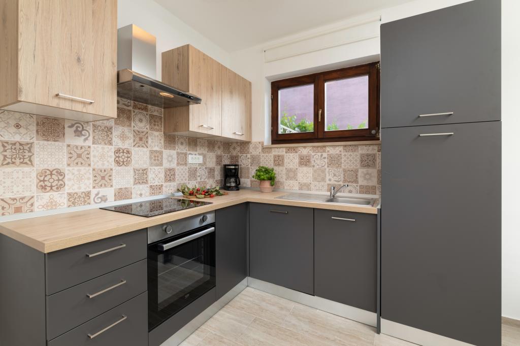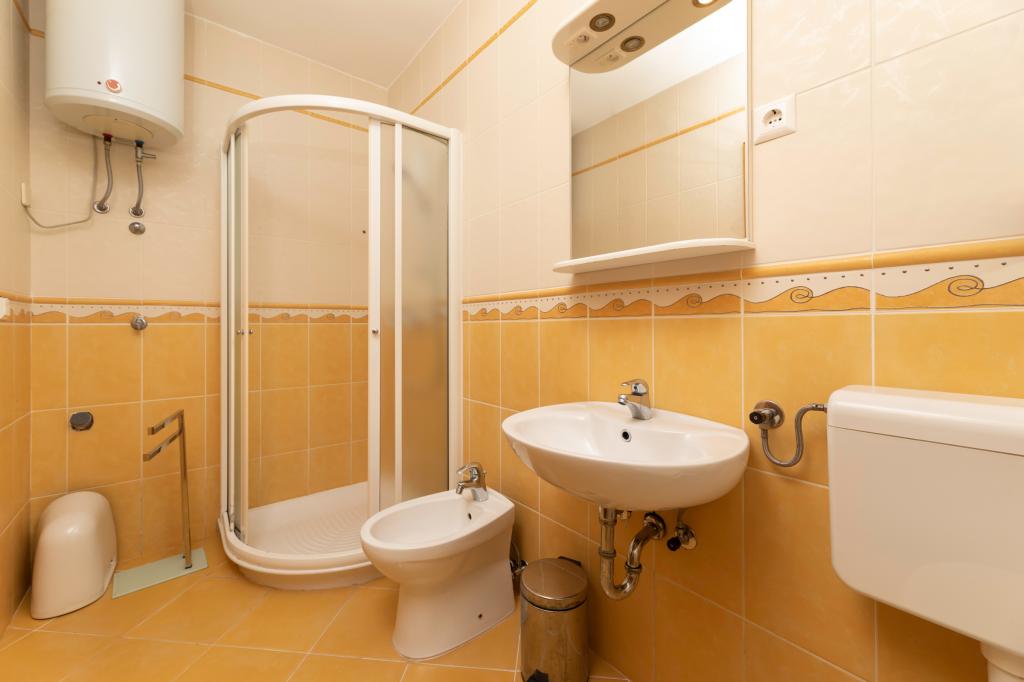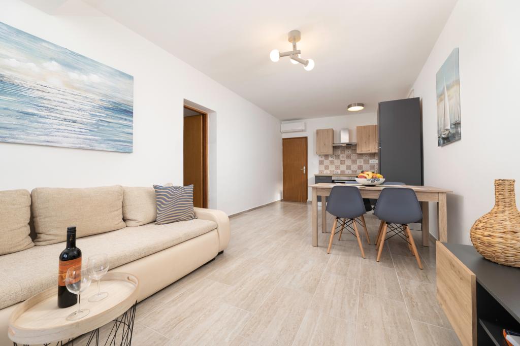 Apartman se nalazi 200m udaljen od mora. 2025. godine u cjelosti je renoviran i opremljen novim namještajem. Apartman ima dva vlastita ulaza, dvije spavaće soba, dvije kupaonice, dnevni boravak s kuhinjom i blagovaonicom, natkrivenu i nenatkrivena terasu. Pomoćni krevet za djecu do 18.g. Ukupna površina je 64m2. Parking za tri automobila se nalazi unutar objekta i besplatan je. Kućni ljubimci su dozvoljeni uz prethodni dogovor i stalni nadzor vlasnika.