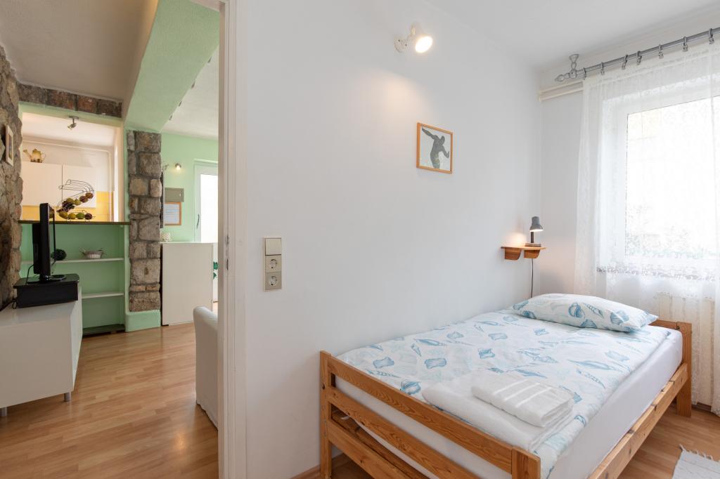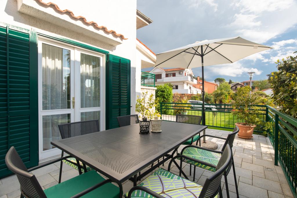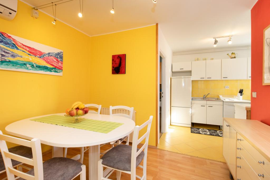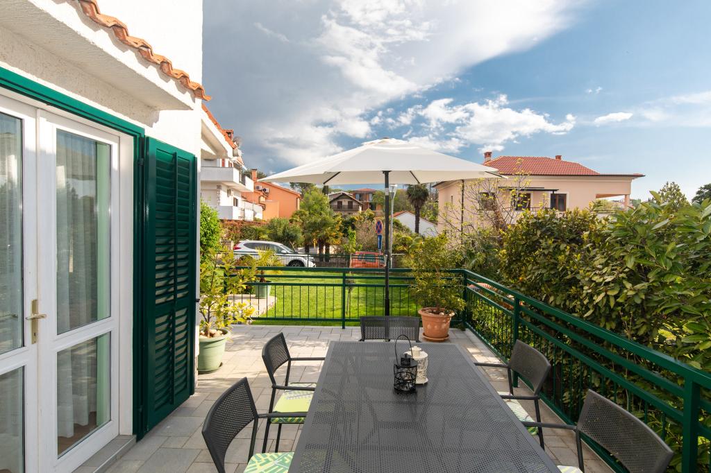 Kompletno opremljen apartman s velikom terasom nalazi se u prizemlju obiteljske kuće. Objekt se nalazi u centru mjesta na mirnoj poziciji. Sastoji se od kuhinje, blagovaonice, dnevnog boravka, dvije spavaće sobe i kupaone. Parking je u sklopu objekta.