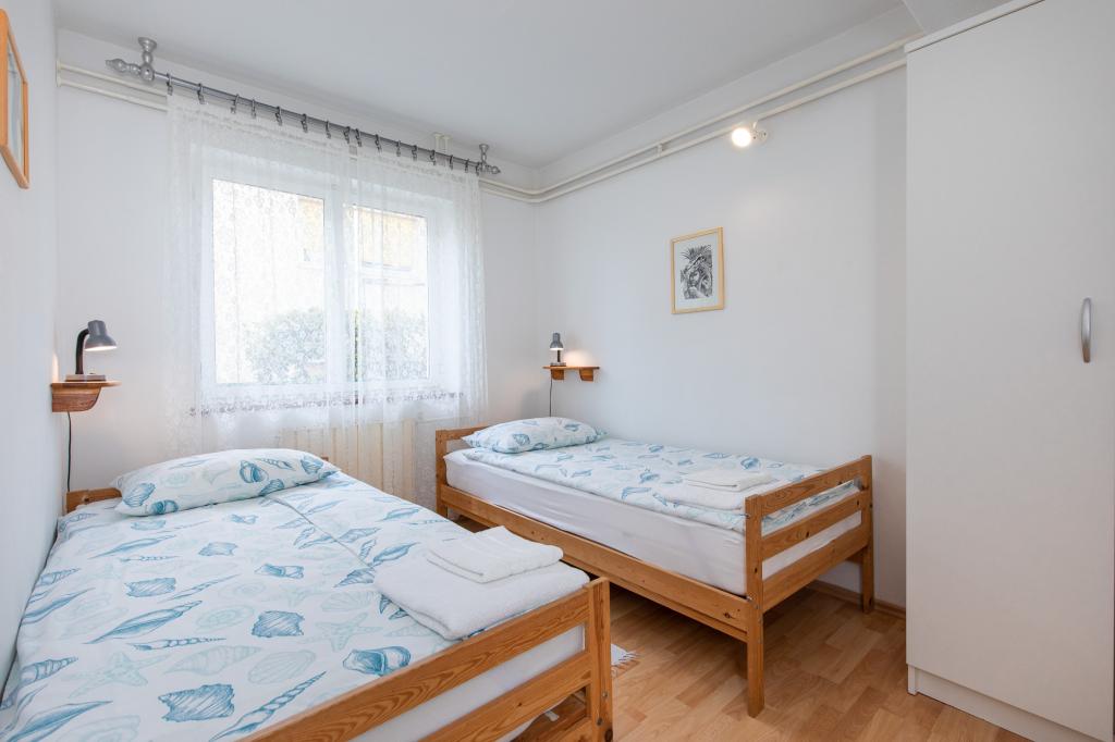 Smještajne jediniceAkontacija je 20 %. Preostali iznos plaća se po dolasku. Vrijeme dolaska je od 14 h, vrijeme odlaska do 10 h. Pomoćni ležaj za petu osobu (kauč u dnevnom boravku) naplaćuje se 10 E noć.
