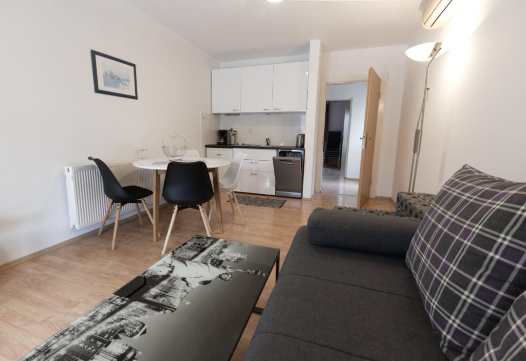 Moderni apartmani se nalaze u malom ribarskom mjestu Njivice, na otoku Krku. Njivice su udaljene samo 11 km od zračne luke Rijeka. Objekt se nalazi 3 minute hoda do samog centra mjesta i predivnih šljunčanih plaža na kojima se možete opustiti i uživati u suncu i moru. Mjesto je idealno za obitelji s malom djecom i ljude koje žele uživati u svježem zraku. Apartmani se sastoje od jedne spavaće sobe, kupaonice, prostranog dnevnom boravka s kuhinjom i blagovaonicom, blakonom i predivnom prostranom terasom koja je idealna za jutarnje kave, a isto tako za večernja uživanja dok svjež zrak dolazi iz šume. Zahvaljujući kauču na razvlačenje koji se nalazi u dnevnom boravku omogućuje smještaj za dodatne dvije osobe. Studio se sastoji od dnevnog boravka s ležajem, blagovaonice i separiranom kuhinjo, odvojenom kupaonicom, te malom natkrivenom terasom ispred ulaza (20m2).