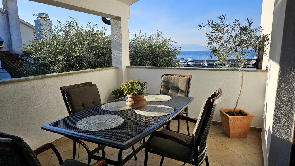 Kompletno uređeni i novo opremljeni apartmani sa terasama i lijepo uređenoj okućnici, u obiteljskoj kući u Njivicama. Objekt se nalazi u samome centru, pored mora i lučice. Udaljenost od mora i svih glavnih sadržaja je 20 - 200 m. Restorani i kafići su u neposrednoj blizini. Prva plaža je na udaljenosti 3 minute hoda. Trgovina- market, ljekarna, poštanski ured, turistički ured, nalaze se u krugu od 200 metara. Svaki stan ima svoje parkirno mjesto u dvorištu- ne naplaćuje se.