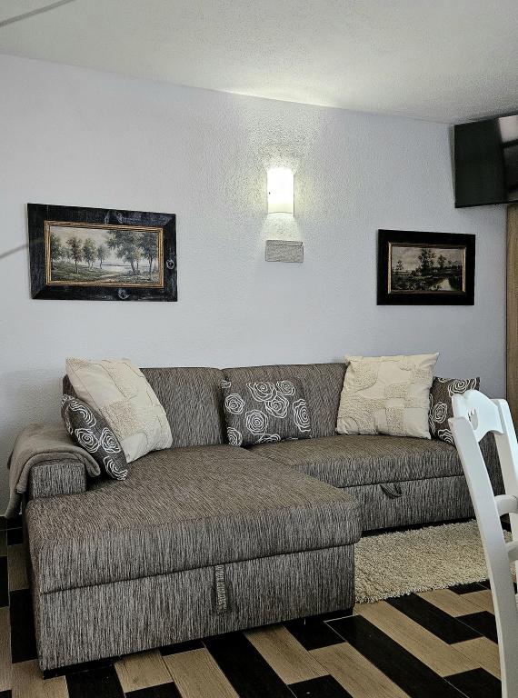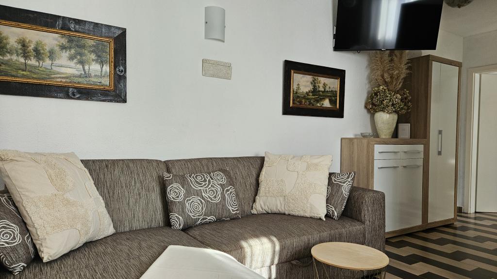 Pročitaj više Smještajne jediniceAkontacija je 25% Vrijeme dolaska je od 14 h, vrijeme odlaska do 10 h. Kućni ljubimci na upit. Vrijeme dolaska poželjno je navesti, zbog dočeka klijenata na rampi prilikom ulaska autom u privatnu ulicu. Po dolasku, dobivate daljinski upravljač za otvaranje rampe i ključ stana.