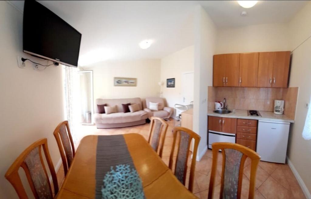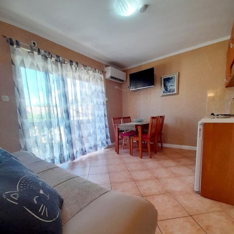 Apartmani su smješteni u malom mjestu Njivice na otoku Krku. Nedaleko od samog mjesta se nalazi zračna luka Rijeka. Plaža od samog objekta se nalazi cca 300 - 400 m, kao i od samog centra mjesta. Apartmani se sastoje od jedne spavaće sobe, kupaonice, prostranog dnevnom boravka s kuhinjom i blagovaonicom, blakonom. Zahvaljujući kauču na razvlačenje koji se nalazi u dnevnom boravku omogućuje smještaj za dodatnu osob. Apartmani su cca veličine 35 m 2
