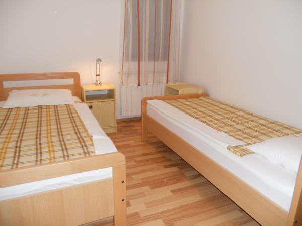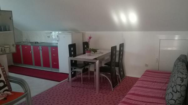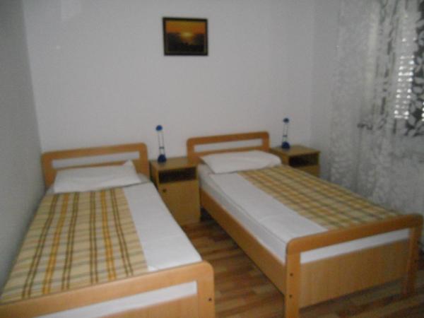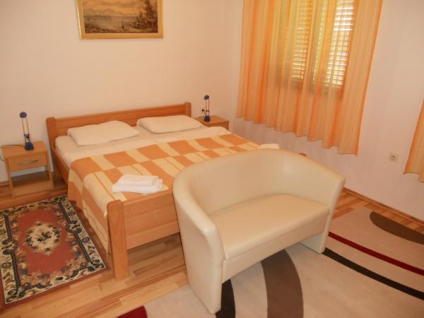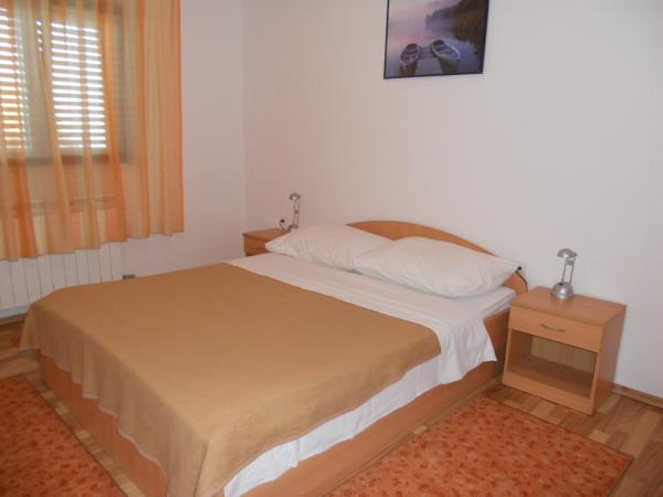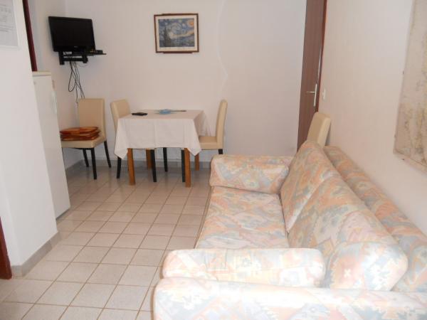Vrlo lijep stariji par, apartmani velike, besprijekorno čisto, vrlo dobro opremljeni. Kreveti vrlo udobna. Puno ormarića. Veliki hladnjak sa zamrzivačem. Mikrovalna pećnica. Svaki stan ima natkrivenu terasu koja je vrlo cool i udoban, možete uživati u obroku u hladu. Vrlo cool mjesto zapovijedati pogotovo s malom djecom, kuhinja potpuno opremljena (lonci, tave, pribor za jelo, tanjuri, tave, daske za rezanje i jednu godinu mogu pripremati jela sebe). Nema klima uređaj, što smatram da je plus, pogotovo za naša grla, a apartmani je cool, što je samo sjetiti se progledati kroz rolete. Izlazi apartmanima vrtu, daleko od ulice (važno za djecu). Garaža. Ja stvarno preporučujem svima!