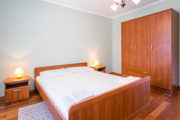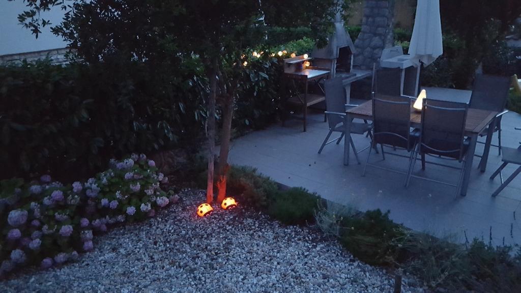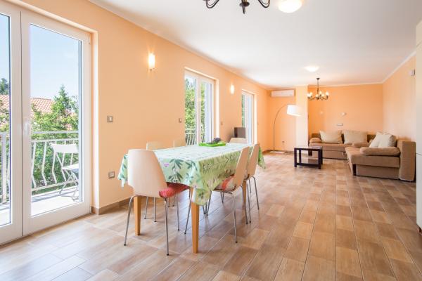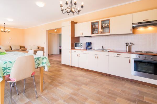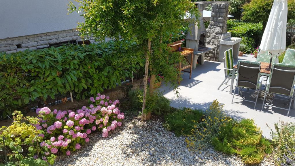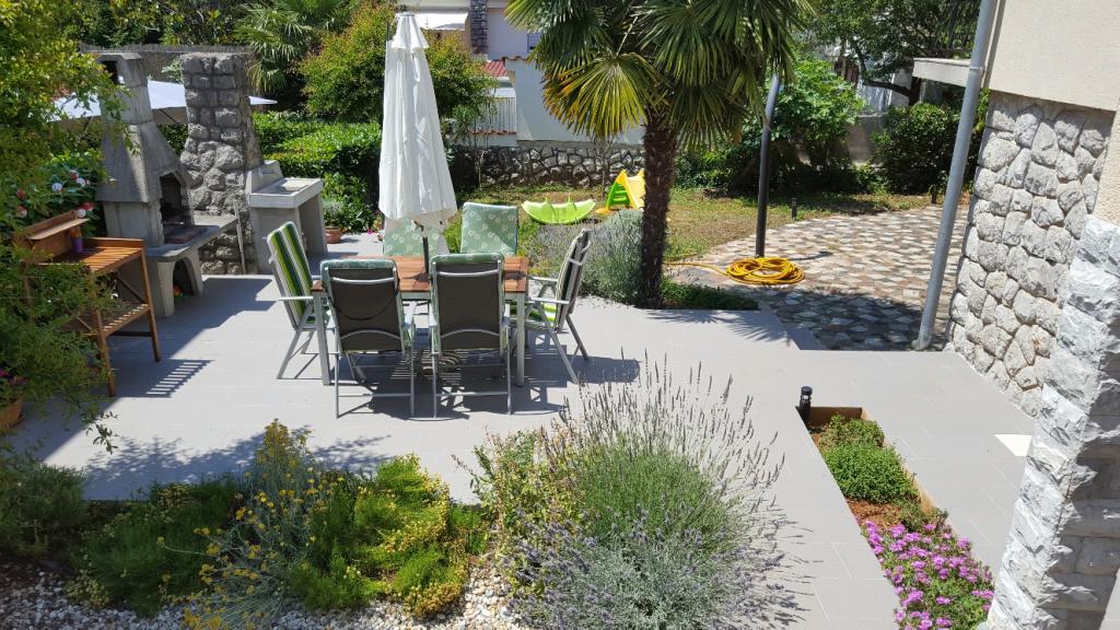 Apartman se nalazi u mirnom predjelu Njivica, 250 m od mora (3-4 minute laganog hoda) i 700 m od centra. U potpunosti je opremljen sa kuhinjskim priborom, na raspolaganju su krpe za posuđe i ručnici. Apartman ima 2 spavaće sobe, 2 kupaonice, prostrani dnevni boravak i kuhinju, balkon te terasu sa grillom u vrtu.