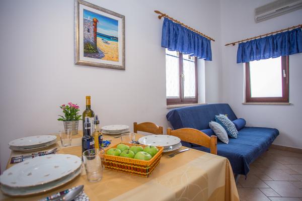 Pročitaj više Smještajne jediniceAkontacija 200 Eura. U slucaju odustajanja od boravka, akontacija se ne vraca. U cijeni je uračunato sve: boravak, parking, prijava, boravišna taksa, i sve ostale takse, klima, WiFi, čišćenje, rucnici (osim rucnika za plazu), struja, topla i hladna voda. Maksimalni broj gostiju: Blue Sky: 4 (jedna kupaonice) Bonaca: 5 (dvije kupaonice) Nautika: 6 (dvije kupaonice) Dolazak poslije 14:00 sati Polazak prije 10:00 sati