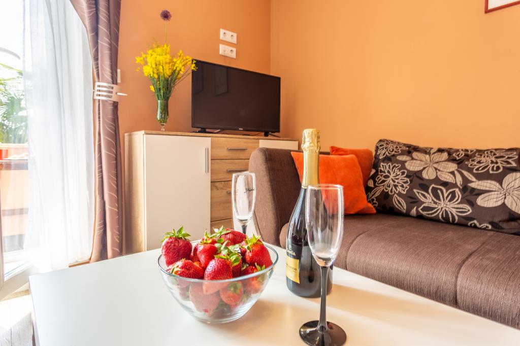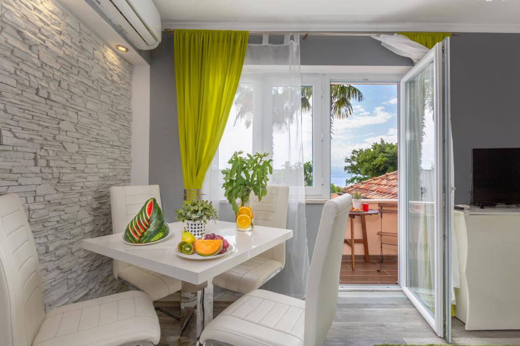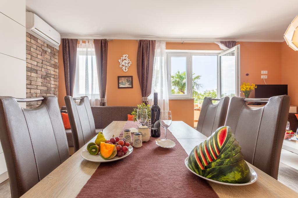 Ljubazni domaćini koji su nas dočekali rashlađenim app.nakon vrućina na putu, s hladnim pićem u frižideru i slatkišima što je djeci bilo super. Apartman prekrasno uređeno, posteljina i ručnici miriše, sve čisto. Dvorište uređeno cvijećem, palme, pokošena trava. Uz bazen i roštilj koji smo zaista iskoristili maksimalno s prekrasnim pogledom na more i divan zalazak sunca. Dvije minute do plaže s prirodnim hladom prilagođena djeci, parkić 10 minuta, nova šetnica uz more do centra Njivica. Domaćini su nas iznenadili s večerom i bocom vina. U svakom slučaju i više od očekivanog. Prekrasno proveden godišnji odmor i mjesto na koje ćemo se sigurno vratiti.
