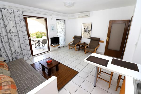 Kompletno uređeni i opremljeni apartmani sa velikim terasama u prizemlju obiteljske kuće u Njivicama. Objekat se nalazi na mirnoj lokaciji u samom centru, drugi red do mora i lučice, parking ispred objekta a udaljenost do mora i svih sadržaja je 50-100 m.